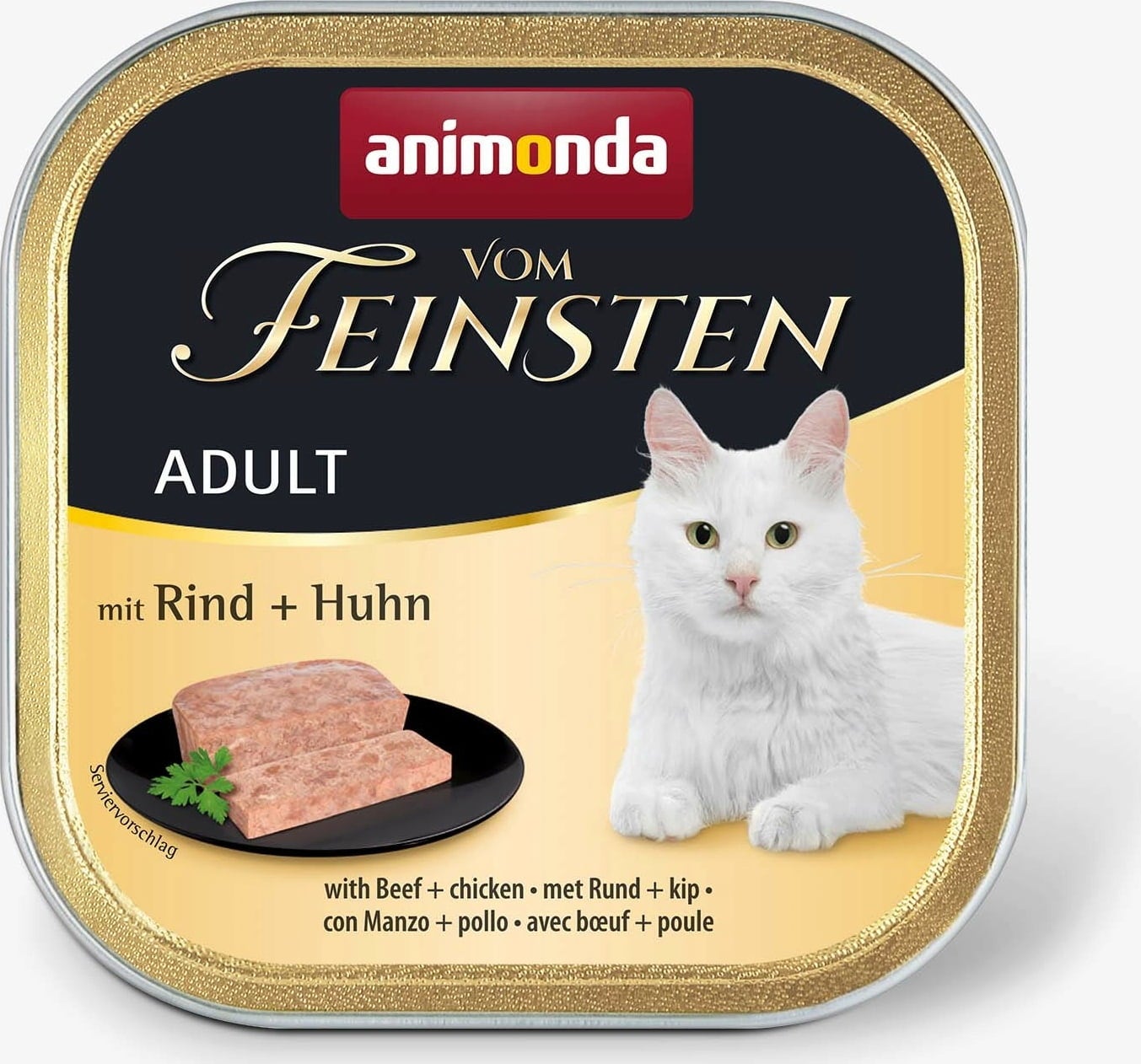 Een feest voor het gehemelte op het hoogste niveau: Vom Feinsten Adult natvoer in bakjes zal je verwende tijger verblijden met een grote verscheidenheid aan smaken en texturen. Of je nu een fijne paté met een romige kern serveert, een paté met hele stukken of malse stukken in een heerlijke saus, er komen alleen lekkernijen in het bakje van je huisdier terecht! Het voer bevat alleen zorgvuldig geselecteerde ingrediënten van vis of vlees, zonder kunstmatige kleurstoffen of conserveringsmiddelen en zonder soja, suiker of granen!