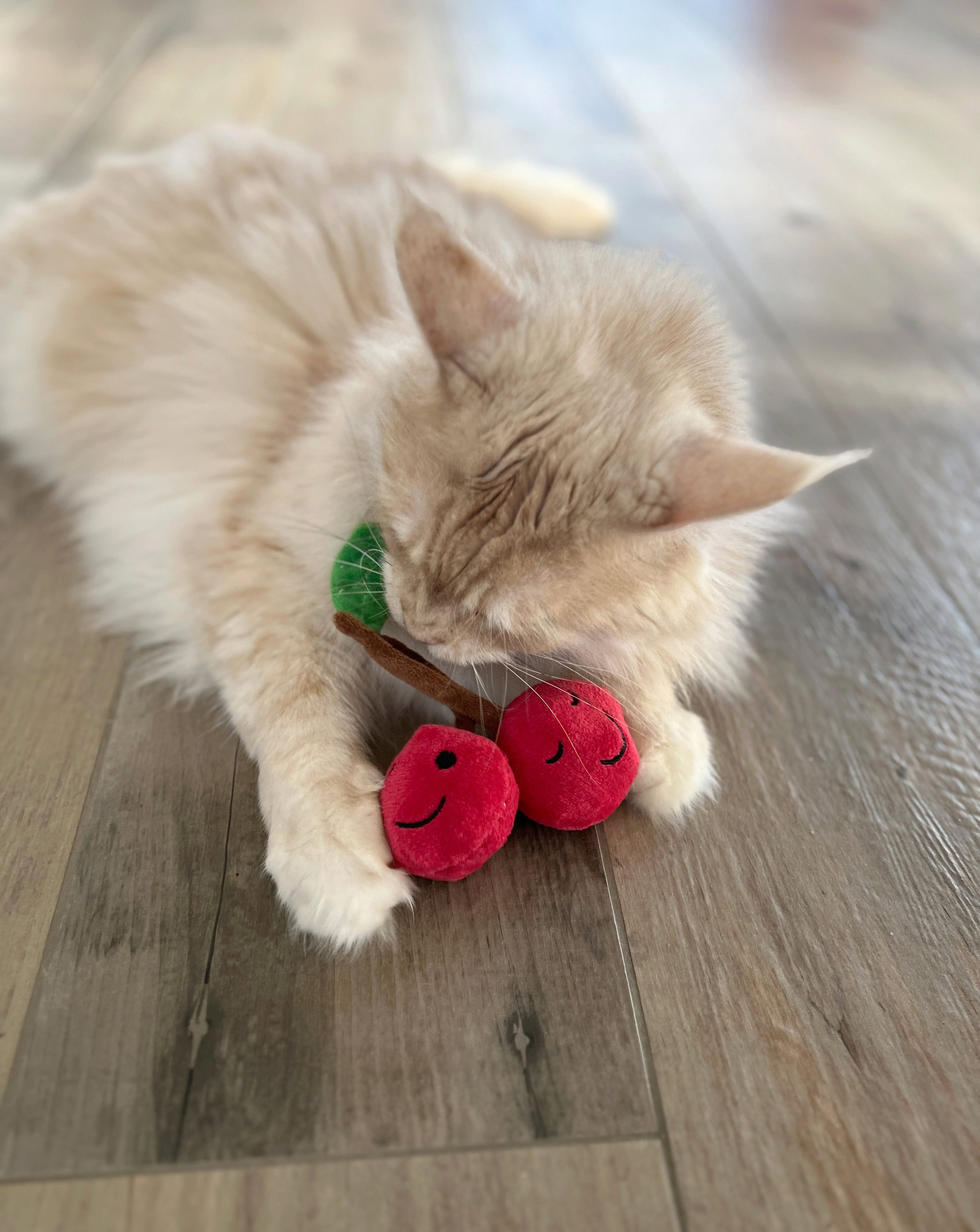 Deze kersen maken niet alleen indruk met hun schattige ontwerp, maar ook met hun innerlijke waarden: een vulling van kattenkruid en Silver Vine maakt ze gewoon onweerstaanbaar voor speelse huiskatten.