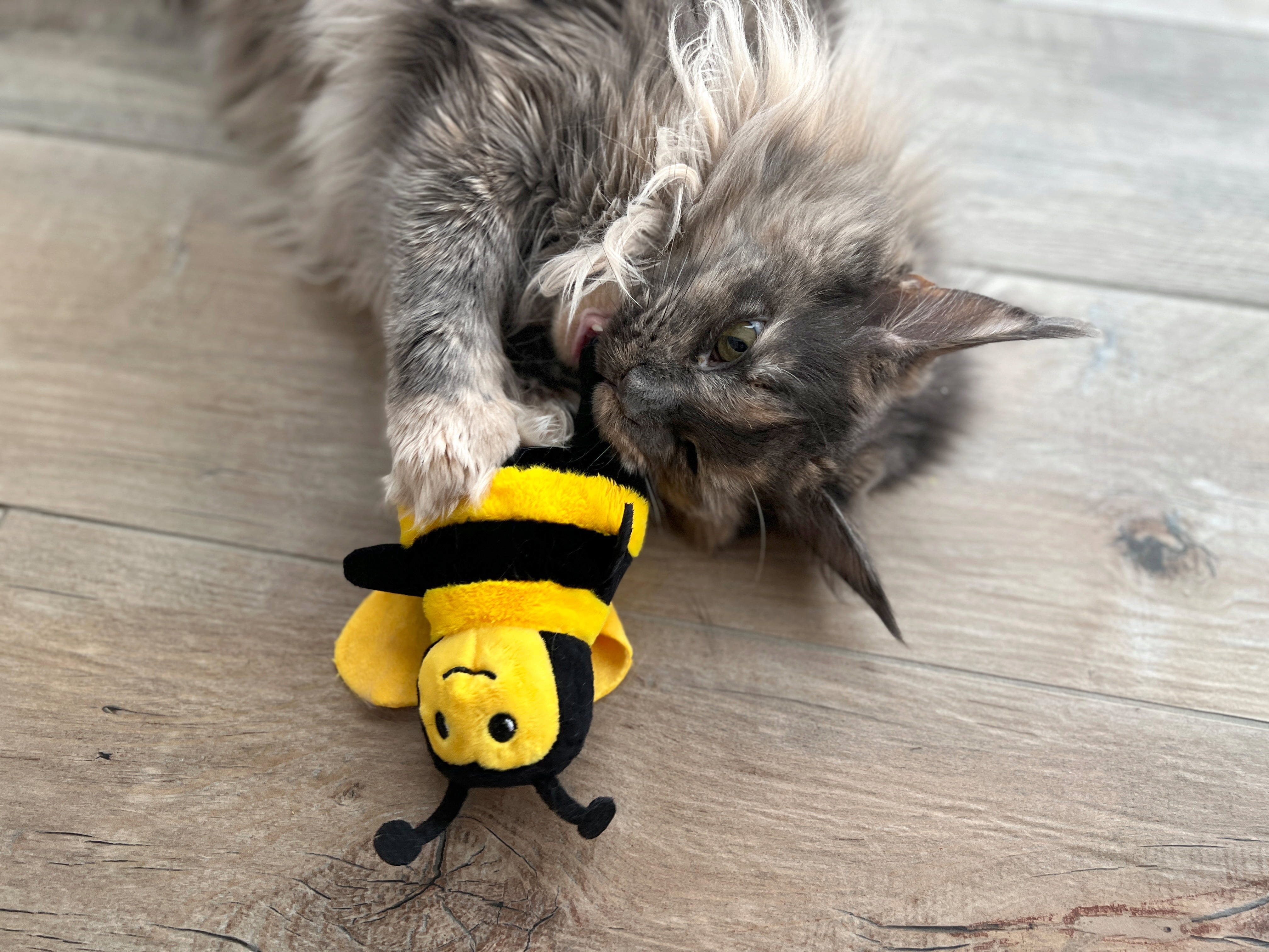 Rondscharrelen in de zomerweide. Bumblebee Maggie maakt niet alleen indruk met zijn schattige ontwerp, maar ook met zijn innerlijke waarden: een vulling van speltkaf, kattenkruid en Silver Vine maakt het gewoonweg onweerstaanbaar voor speelse huiskatten.