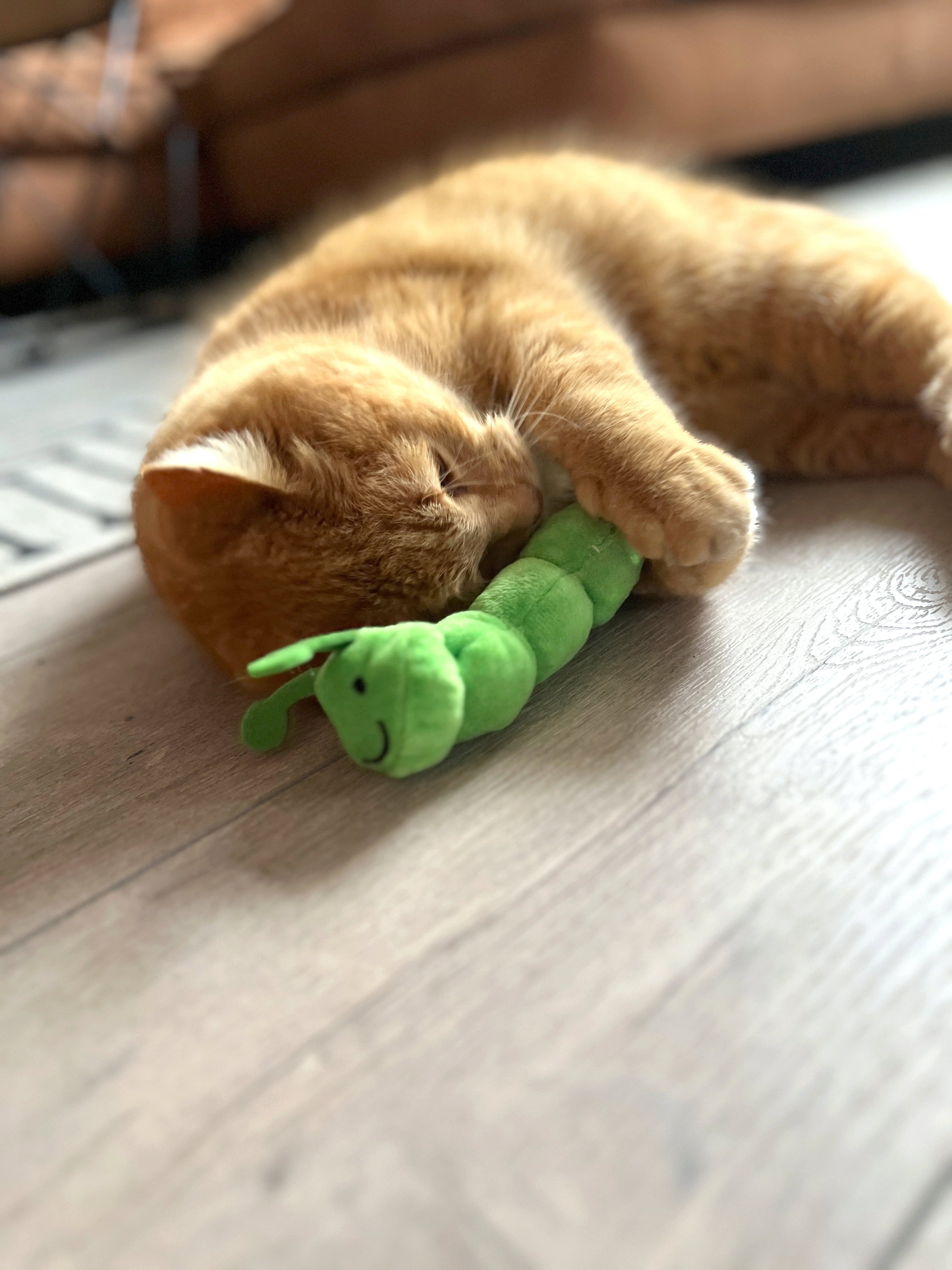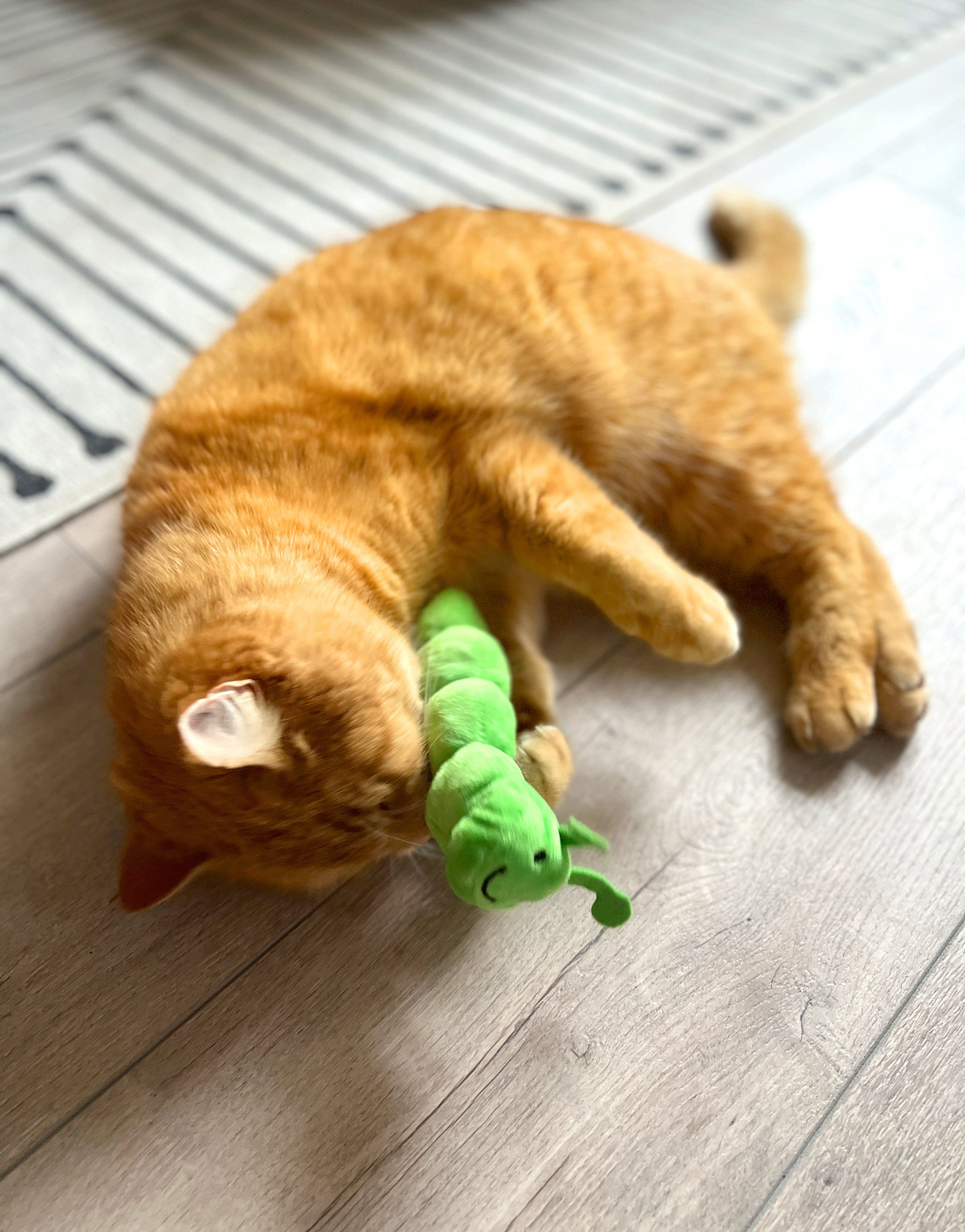 Rondscharrelen in de zomerweide. Rups Pedro maakt niet alleen indruk met zijn schattige ontwerp, maar ook met zijn innerlijke waarden: een vulling van speltkaf, kattenkruid en Silver Vine maakt hem gewoonweg onweerstaanbaar voor speelse huiskatten.