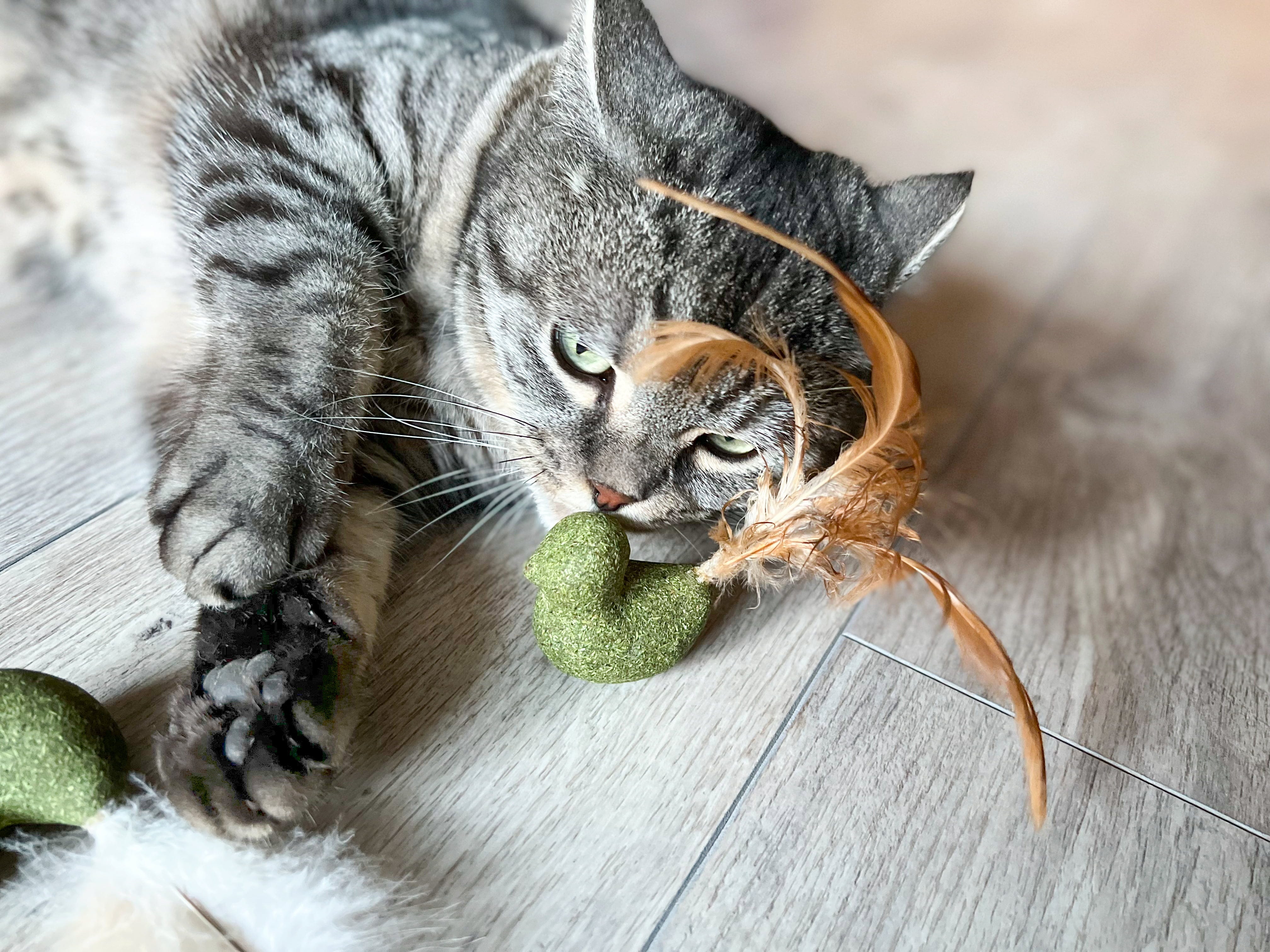 Dit kattenspeeltje zorgt niet alleen voor plezier, maar ondersteunt ook de gebitsverzorging van je kat. Gemaakt van 100% natuurlijke materialen en aangevuld met kattenkruid en Silver Vine - een bekend "kattenkruid" uit Azië - zorgt het voor afwisseling in het dagelijks leven van je kat.