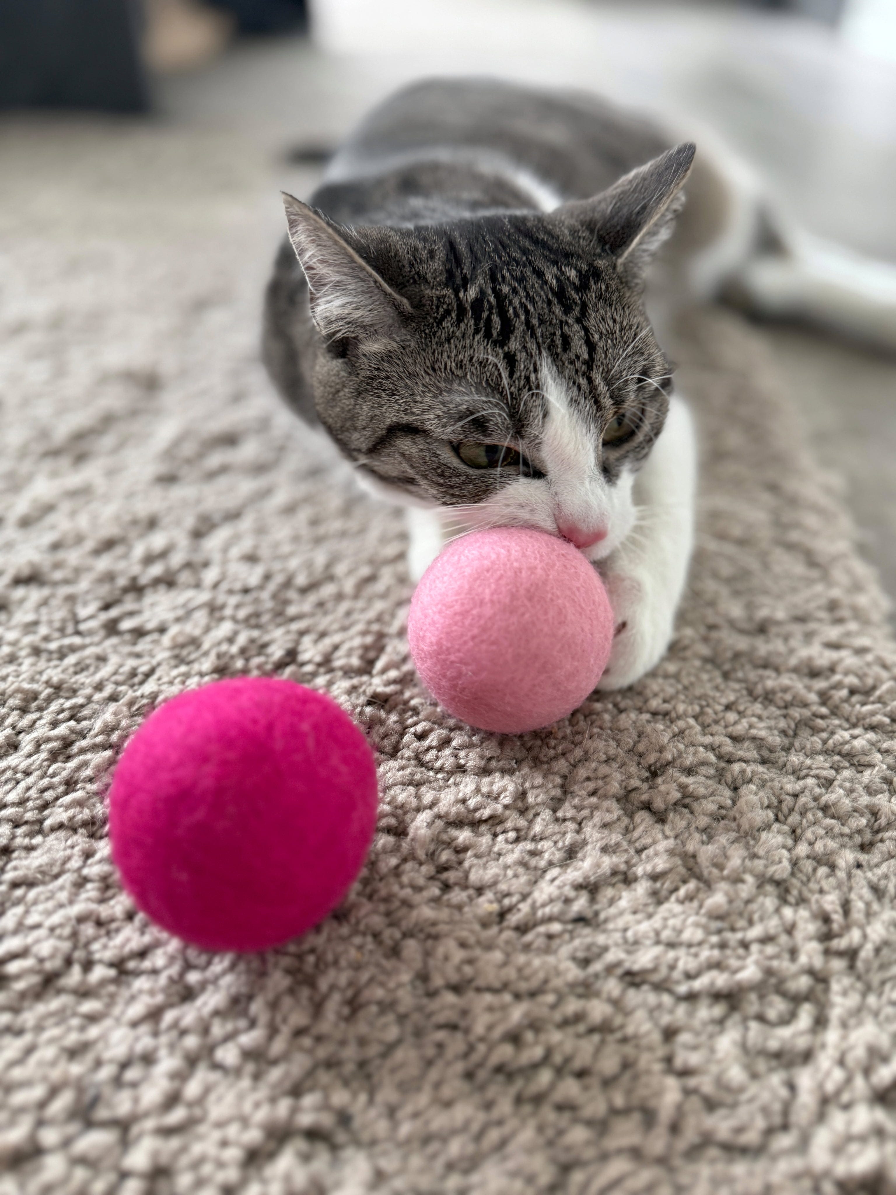 Gemaakt van 100% natuurlijke viltwol en gevuld met Silver Vine en valeriaan, beloven deze speelballen bijzonder speelplezier.