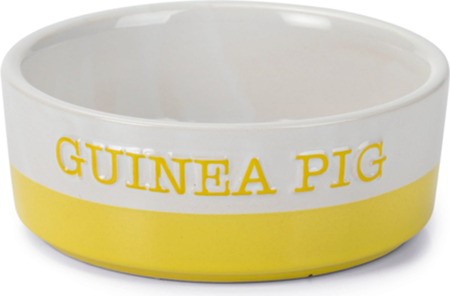 Hier eet ik! Deze voerbak voor cavia's laat er geen twijfel over bestaan aan wie de heerlijke inhoud toebehoort. Het is niet alleen een geweldige blikvanger, maar dankzij de extra hoge rand en het stevige keramische ontwerp zorgt het er ook voor dat er niets onnodig wordt rondgestrooid en wegglijdt.