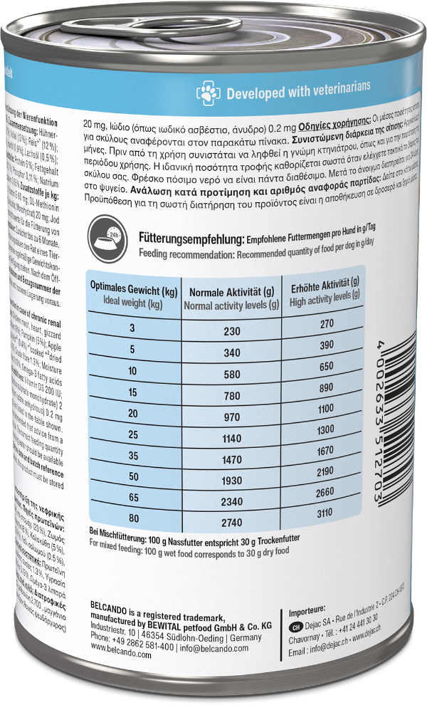 Als je trouwe viervoeter kampt met nierproblemen, is een gerichte voeding een belangrijke bouwsteen voor een betere levenskwaliteit. Met BELCANDO Vetline Renal kun je je hond een speciaal ontwikkeld voer voor acute of chronische nierinsufficiëntie aanbieden zonder afbreuk te doen aan de smaak. Dankzij ingrediënten van hoge kwaliteit, zoals verse kalkoen, ei en krill, wordt het voer gemakkelijk geaccepteerd, zelfs door kieskeurige dieren. Dit helpt je huisdier om vitaal en tevreden van elke dag te genieten, ondanks gezondheidsuitdagingen.