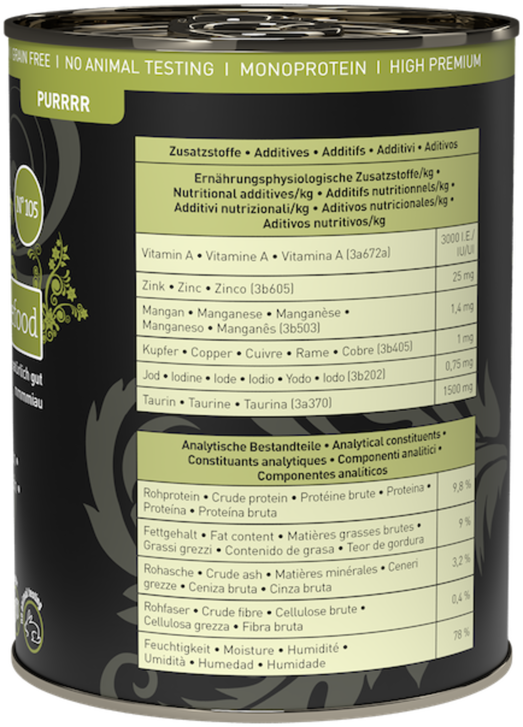 Deze heerlijke premium-maaltijd laat jouw kat gegarandeerd spinnen van plezier! Met zorgvuldig geselecteerde ingrediënten, een diervriendelijke receptuur gebaseerd op het prooidierconcept en volledig zonder onnodige toevoegingen, biedt dit voer puur genot voor jouw huistijger – en vormt het de perfecte basis voor een vitaal kattenleven.