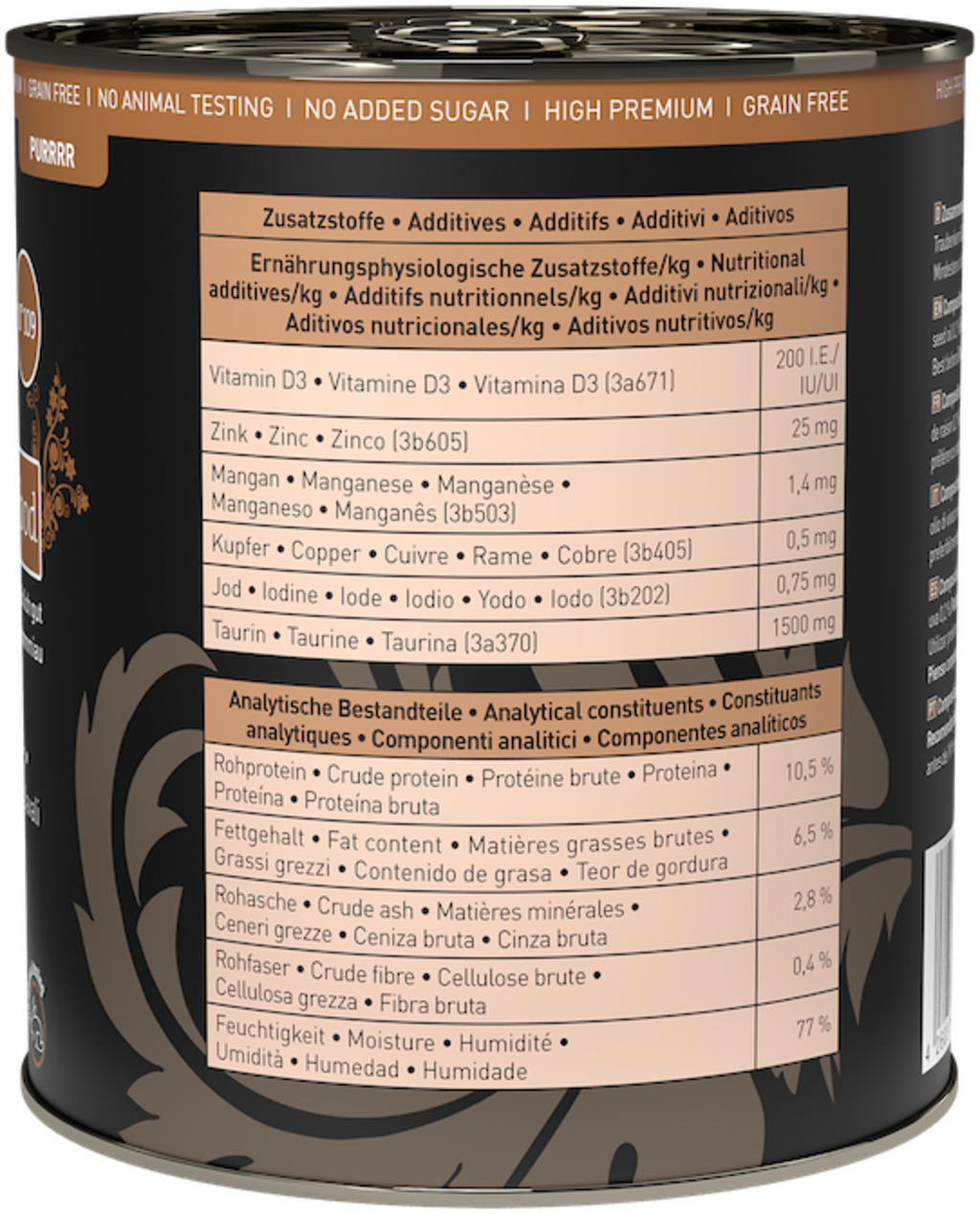 - Meer dan 98% vlees, vis, zeevruchten, orgaanvlees en kookbouillon