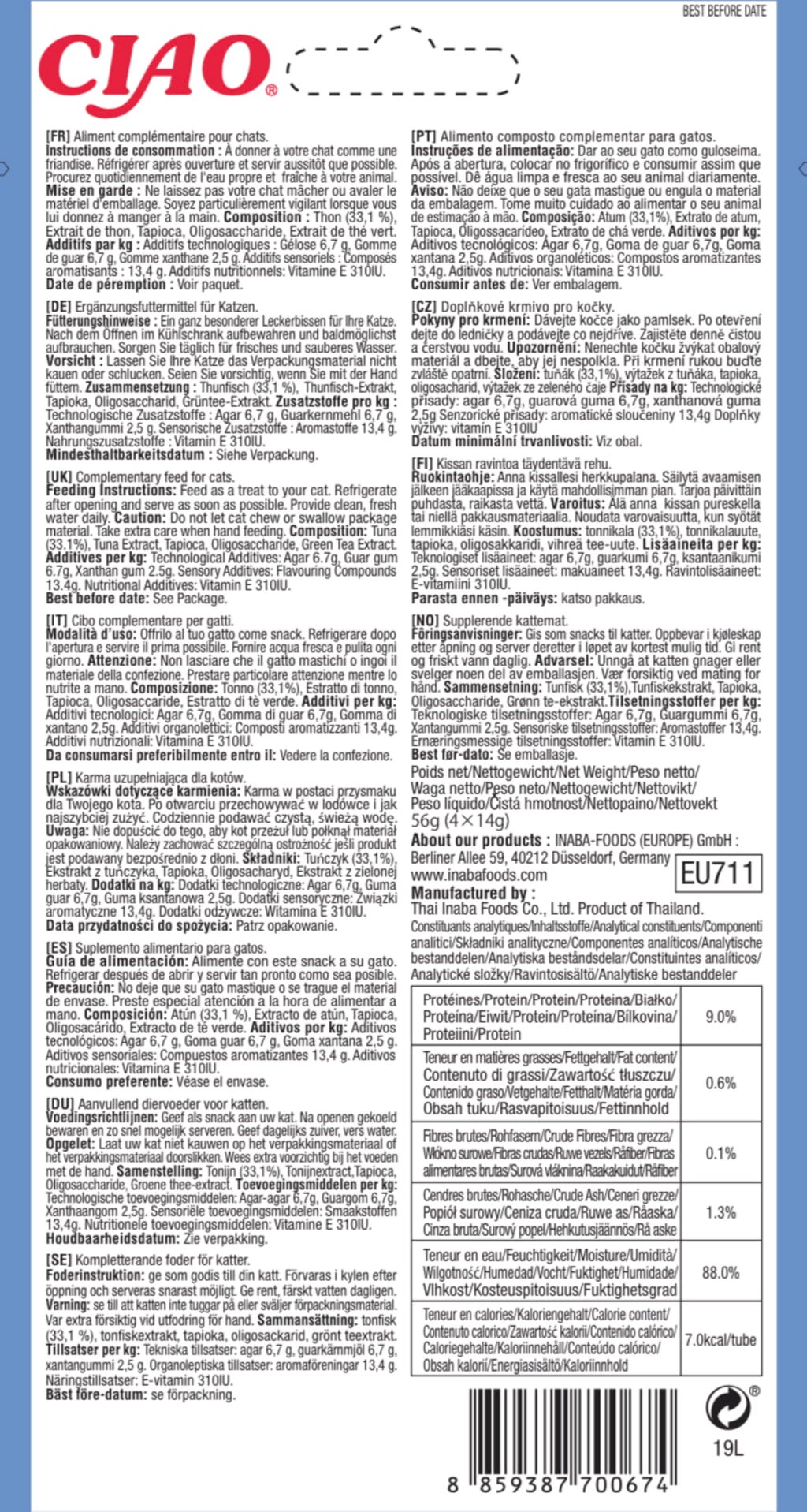 d! De heerlijke geleisnack is een onweerstaanbare traktatie voor je kat en overtuigt niet alleen door de geweldige textuur, maar ook door de geselecteerde ingrediënten en de soortspecifieke receptuur. En omdat het caloriegehalte bijzonder laag is, kan je kat er vaker van genieten.