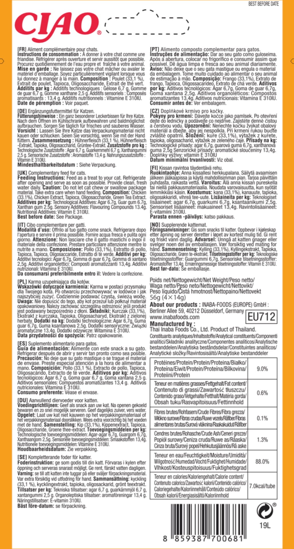 d! De heerlijke geleisnack is een onweerstaanbare traktatie voor je kat en overtuigt niet alleen door de geweldige textuur, maar ook door de geselecteerde ingrediënten en de soortspecifieke receptuur. En omdat het caloriegehalte bijzonder laag is, kan je kat er vaker van genieten.