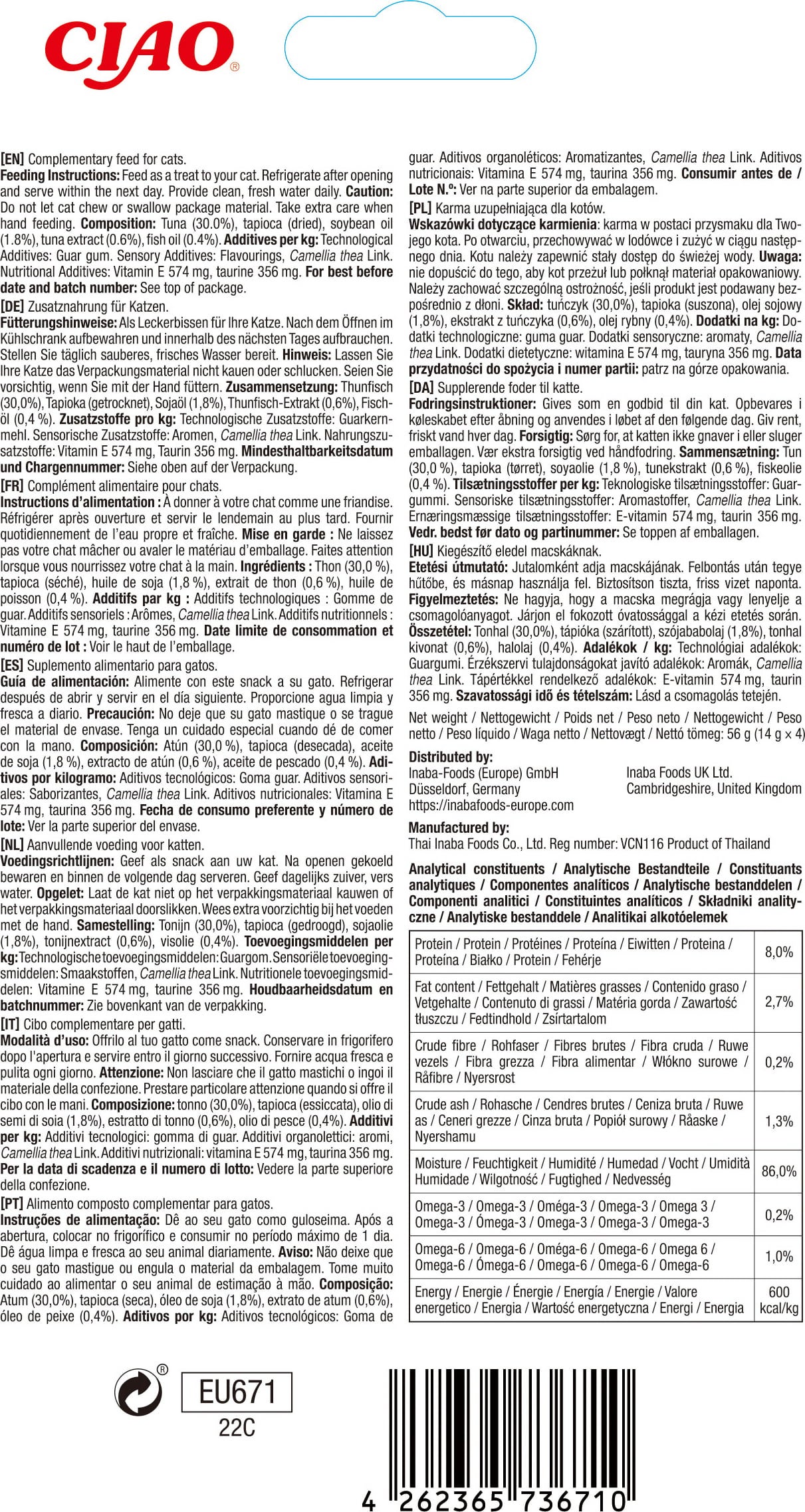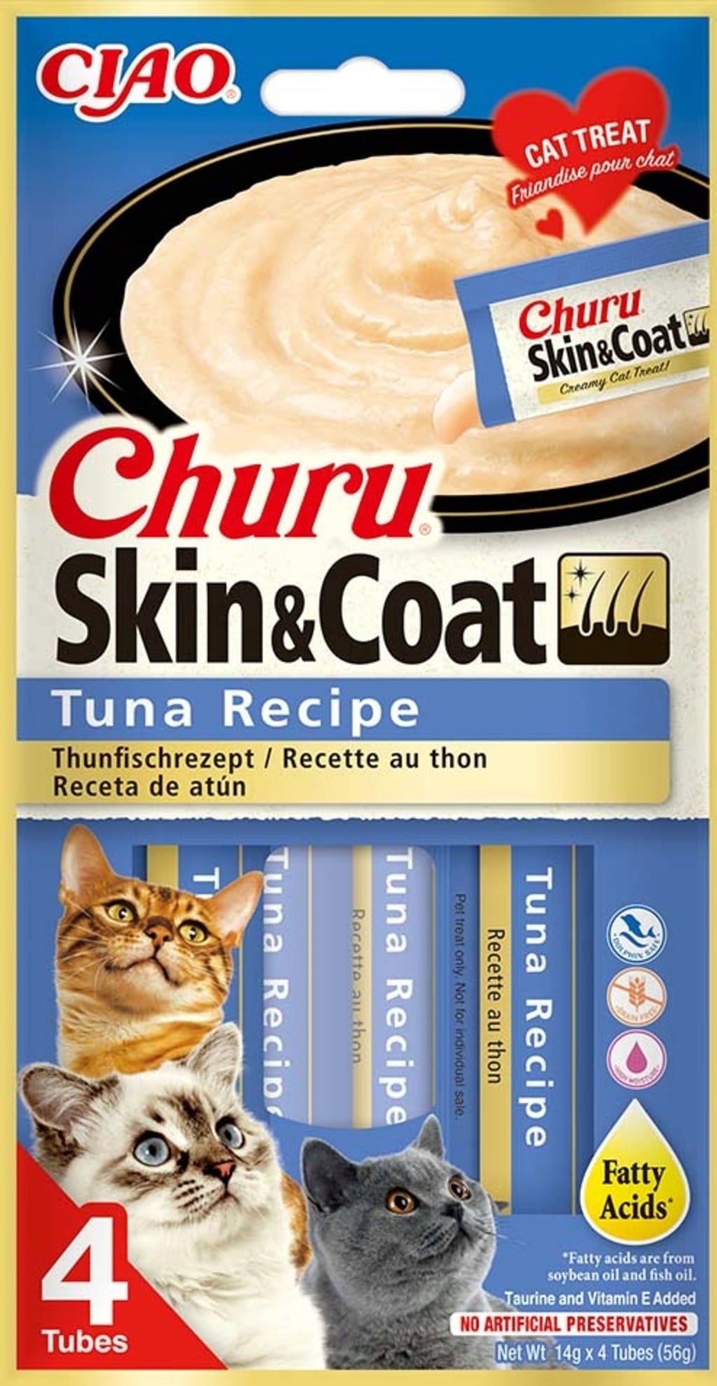 Churu Schleck Snack Skin&Coat, 4x14 g, Tonijn (56 g)