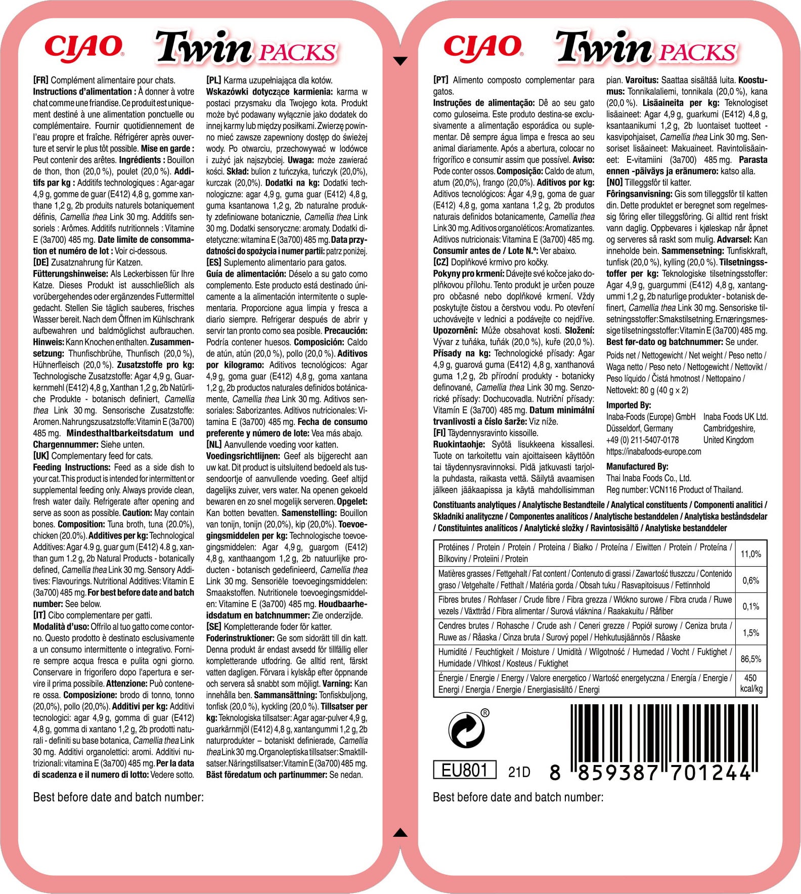 Churu Twin Packs, 2 x 40g, Tonijn en kip (80 g)