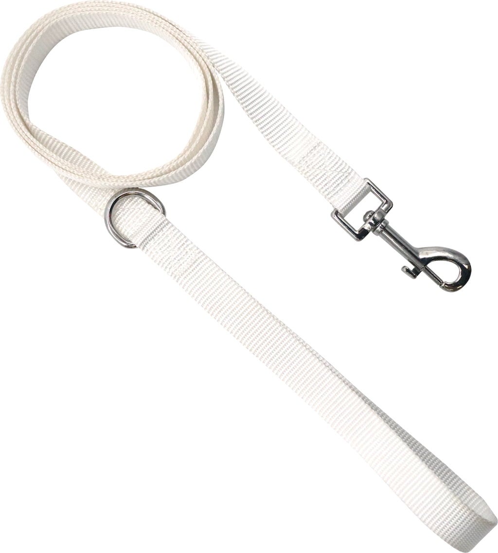 Stijlvolle lijn in crèmewit, voorzien van zilverkleurige beslagdelen. Deze hondenriem met handlus past perfect bij witte tuigen en halsbanden en maakt de bruiloftslook van je hond helemaal compleet.