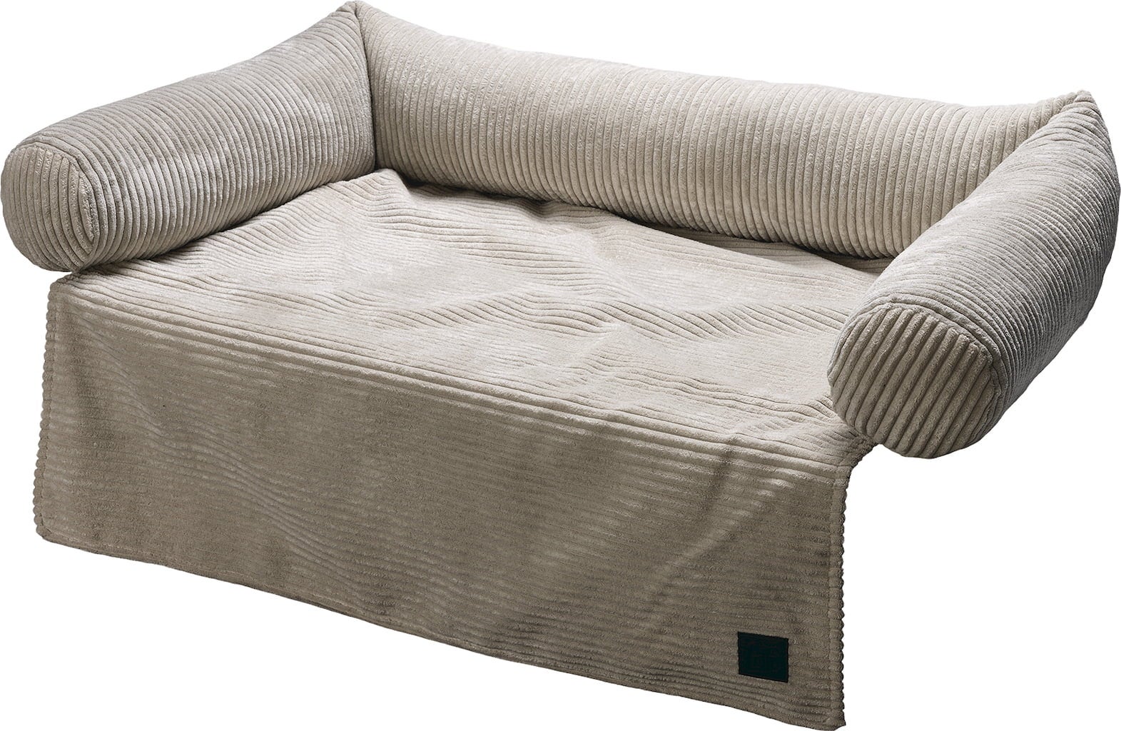 Een stijlvolle manier om te ontspannen! Dit bankkussen van breed ribfluweel straalt coole retro charme uit en is een geweldige aanvulling op je bank. Het beschermt effectief tegen hondenharen en vuil, terwijl het je viervoeter een onvergelijkbaar knusse slaapplek biedt. Zo kunnen jullie gezellig samen chillen op de bank.