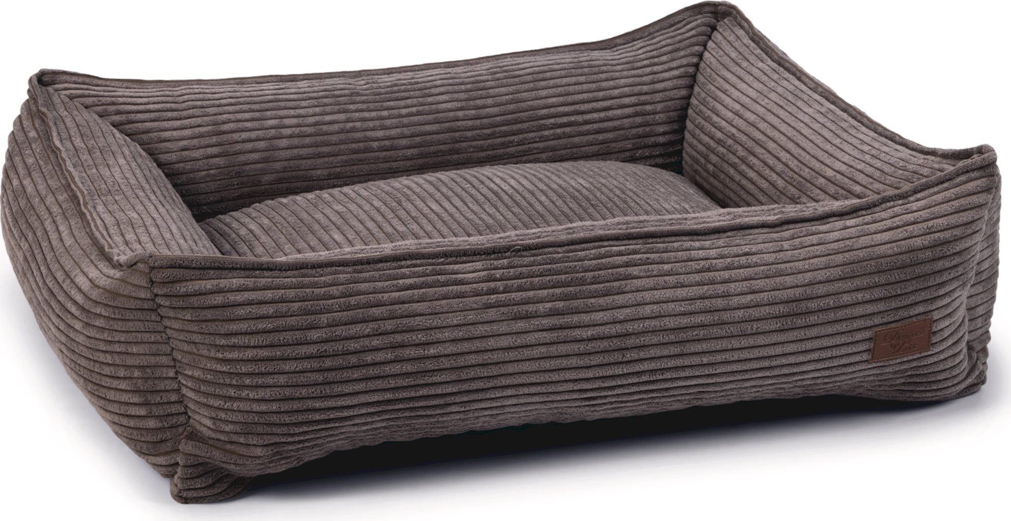 Gemaakt van bruin breed ribfluweel straalt dit heerlijk zachte gewatteerde hondenbed onweerstaanbare retro charme uit. Het zal niet alleen je viervoeter gelukkig maken, maar ook jou.