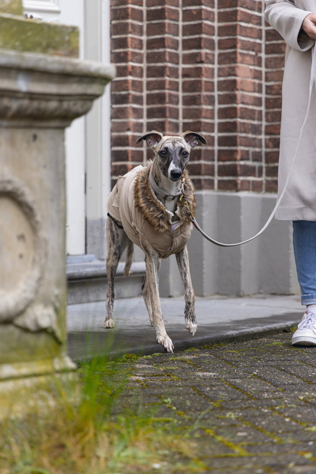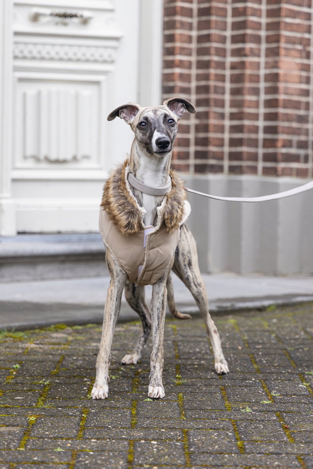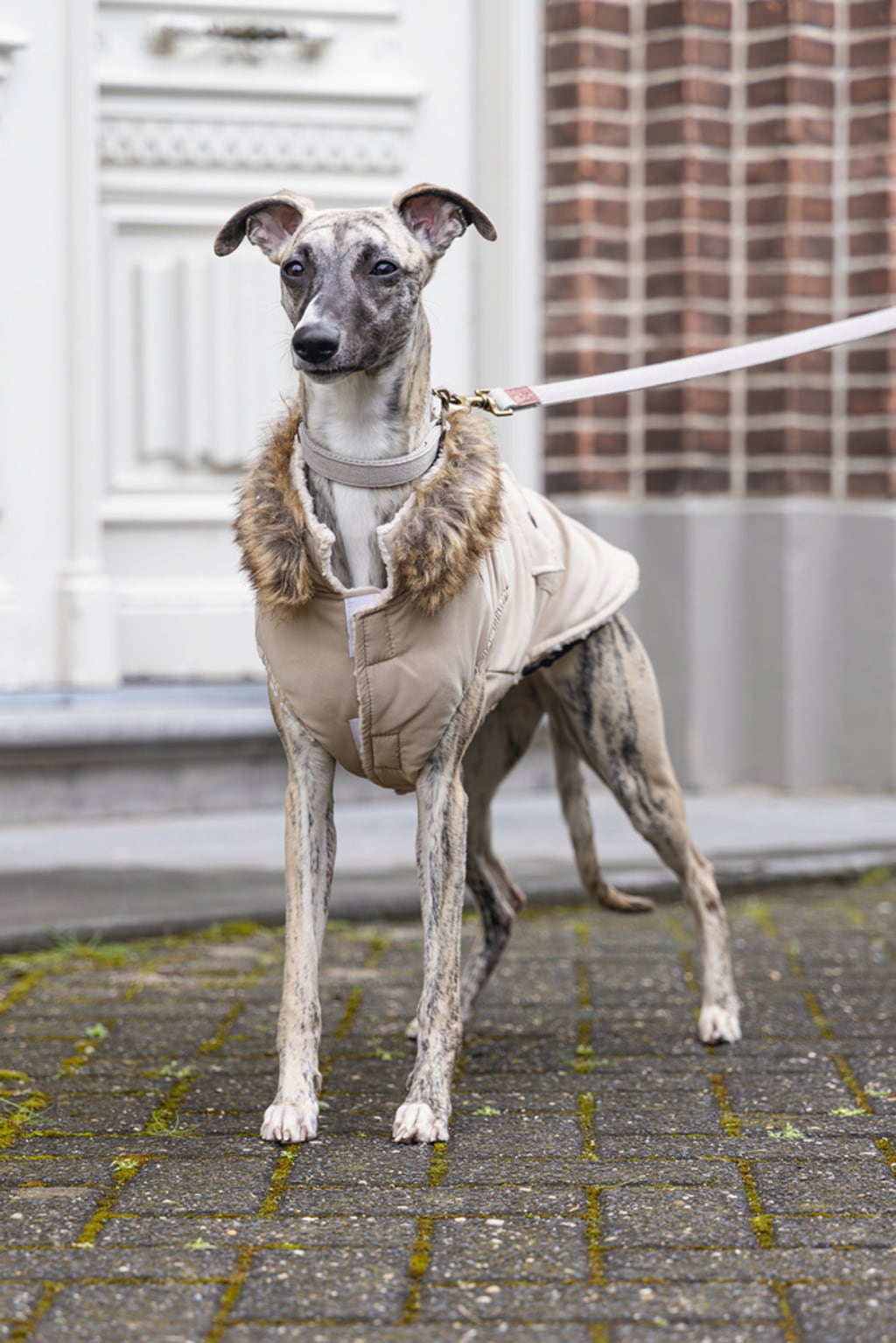 Deze jas in edel beige beschermt je viervoeter op een bijzonder chique manier tegen wind, regen en kou. Zo ben je perfect uitgerust voor wandelingen en ziet je hond er tegelijkertijd geweldig uit.