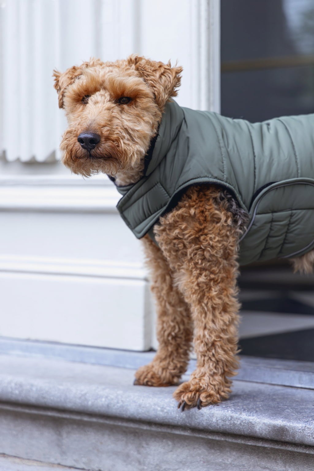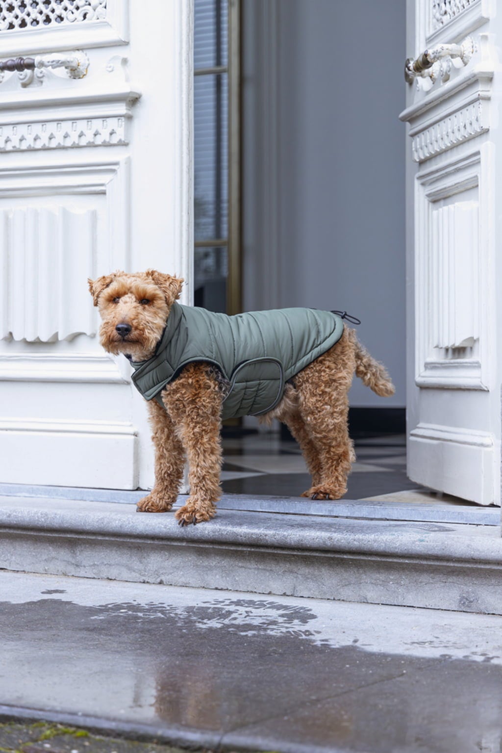 Deze chique jas in klassiek groen is perfect voor de overgangsperiode en een onmisbare metgezel op koele dagen. Gemaakt van waterafstotend polyester aan de buitenkant en gevoerd met zacht fluweel aan de binnenkant, biedt het uw viervoeter optimaal comfort in alle situaties. Als je deze outfit draagt, ben je klaar voor elk avontuur.