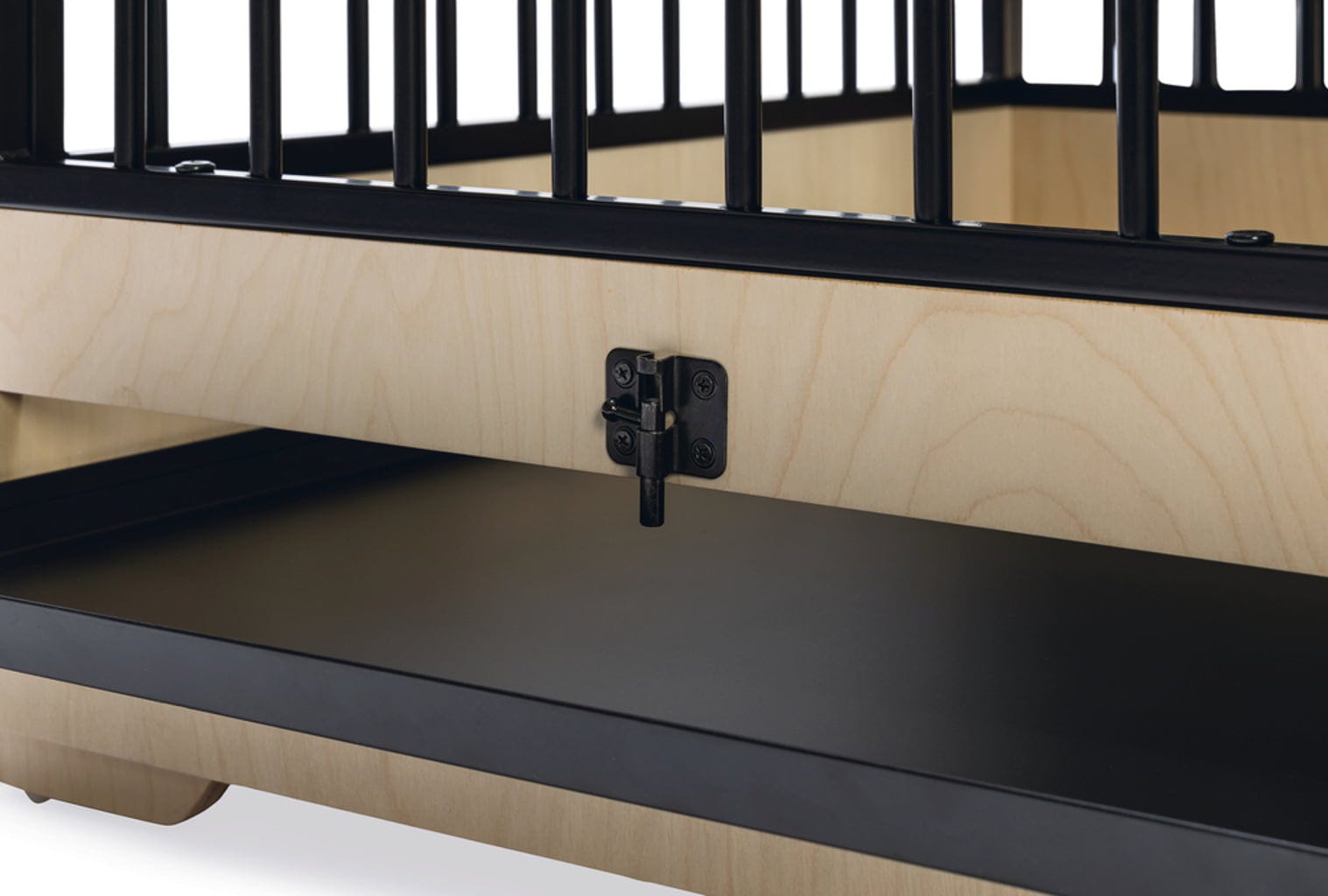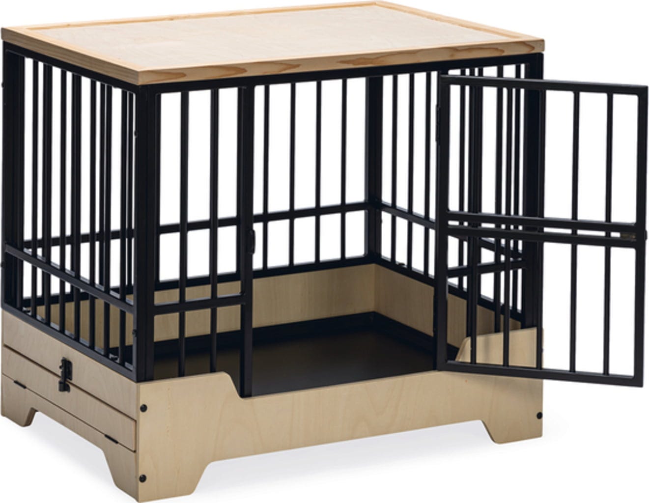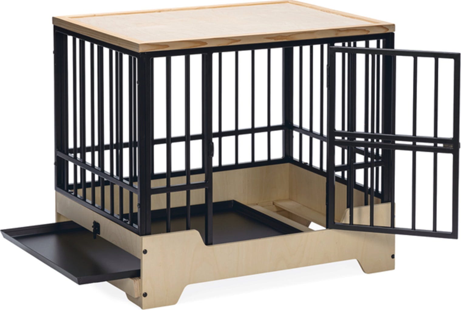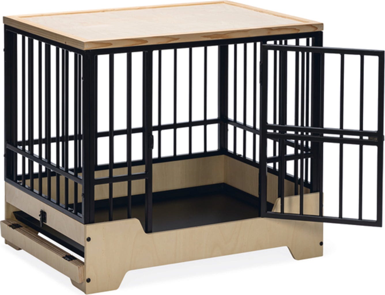 - Gemakkelijk schoon te maken dankzij uitneembare metalen lade achter scharnierend houten frame