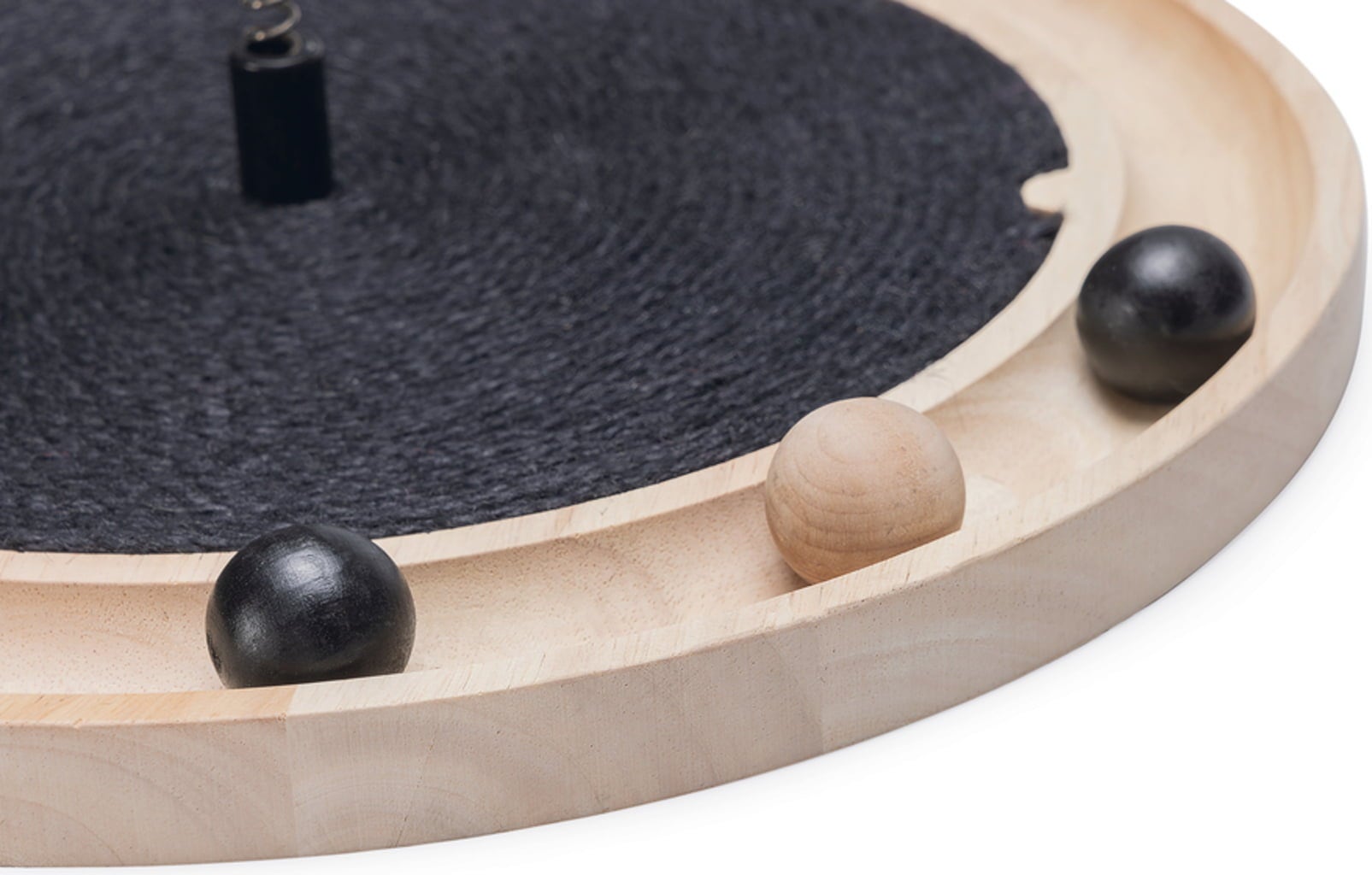 Cool design kan zoveel plezier brengen! Met dit stijlvolle speeltje zal je kat zich gegarandeerd niet zo snel vervelen: de sisalmat in het midden is een geweldige krabmogelijkheid, waaronder kattenkruid verstopt kan worden. De veer met houten bal en de ballen die over de baan bewegen stimuleren op speelse wijze het jachtinstinct van je kat en zorgen voor een diervriendelijke activiteit die lichaam en geest stimuleert.