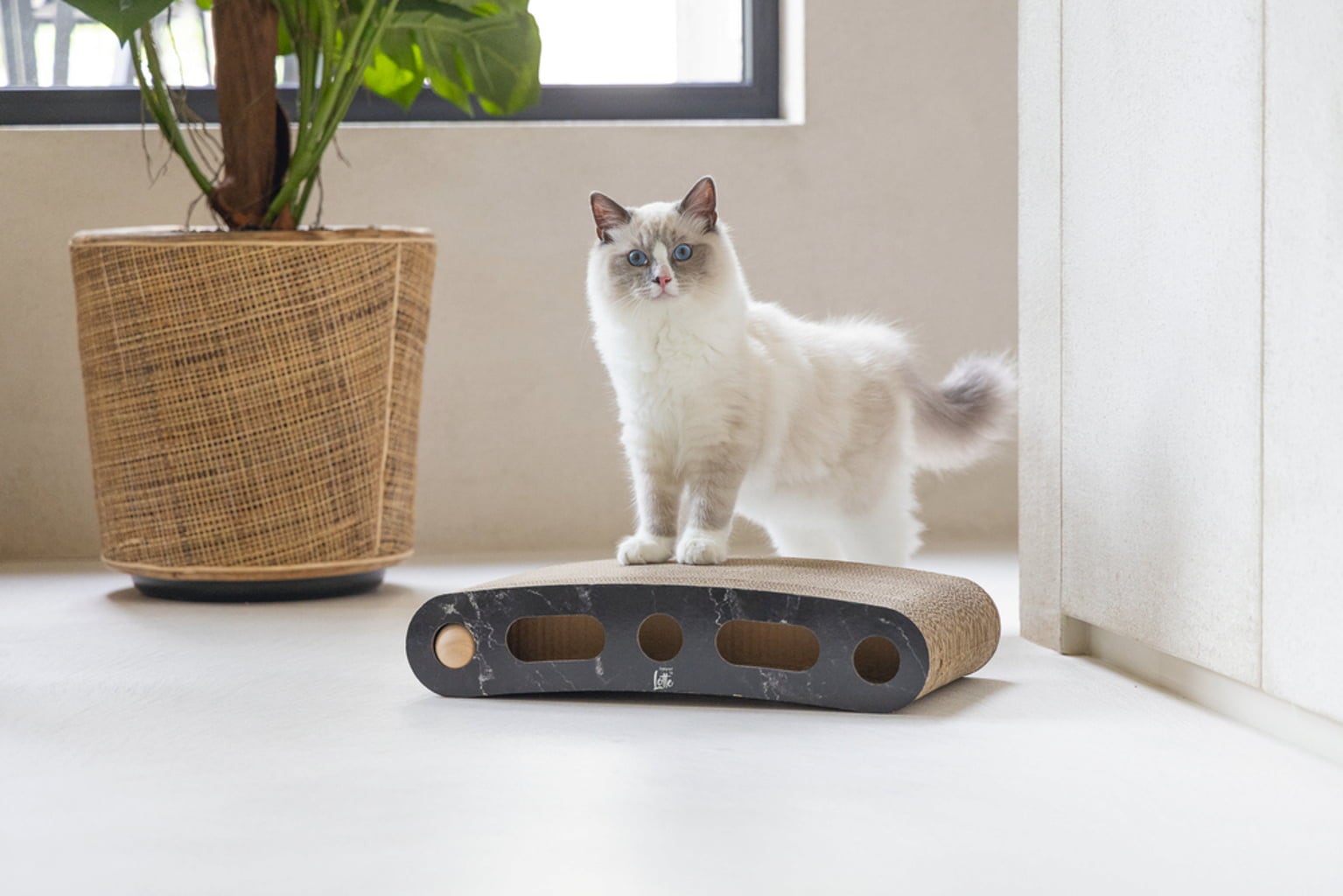 Dit veelzijdige kattenspeeltje laat geen kans op verveling! Het biedt je kat een geweldige horizontale krabmogelijkheid en veel plezier dankzij de twee grappige rollende ballen. Het kattenkruid dat in de plank verstopt zit, maakt de activiteit nog aantrekkelijker en een echt hoogtepunt voor je kat.