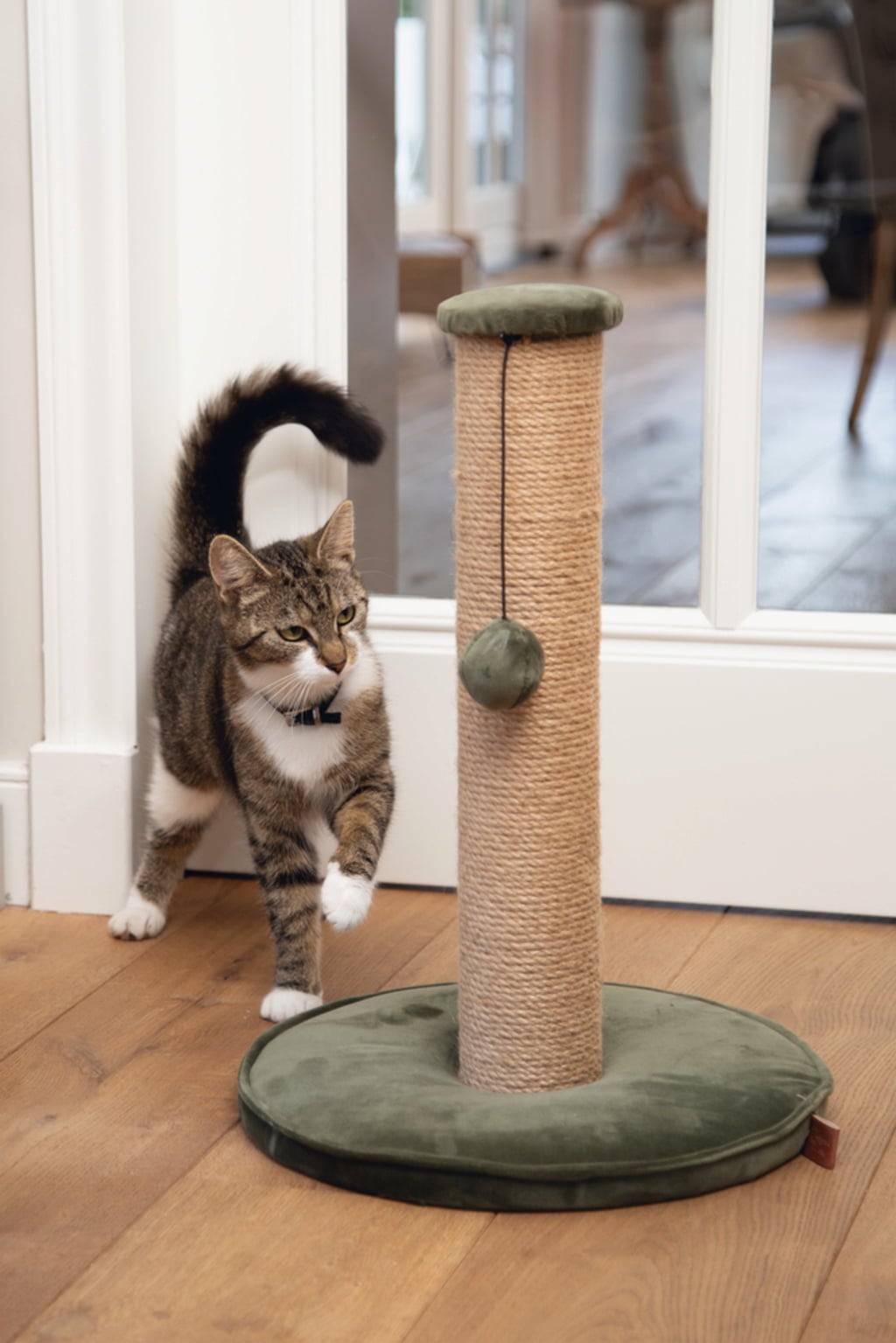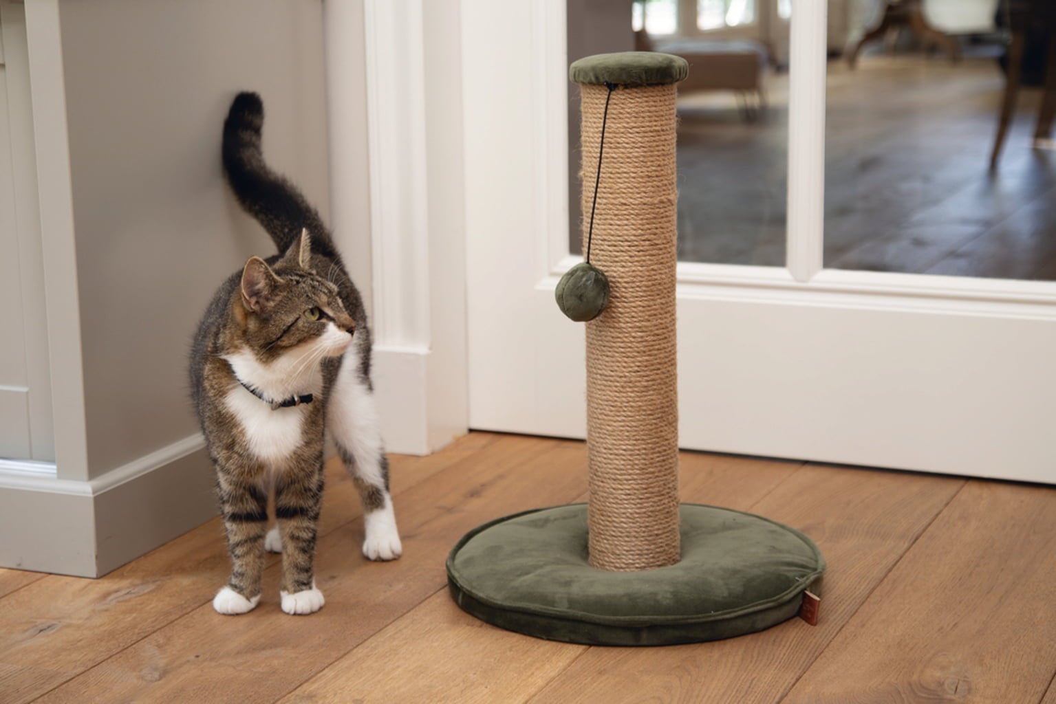 Een fluwelen bodemplaat en een krabpaal omwikkeld met jute touw maken van deze krabboom een prachtig accessoire in elk kattenhuishouden. Dankzij het geïntegreerde speeltje biedt hij je huistijger niet alleen urenlang speelplezier, maar past hij ook perfect in allerlei interieurstijlen.