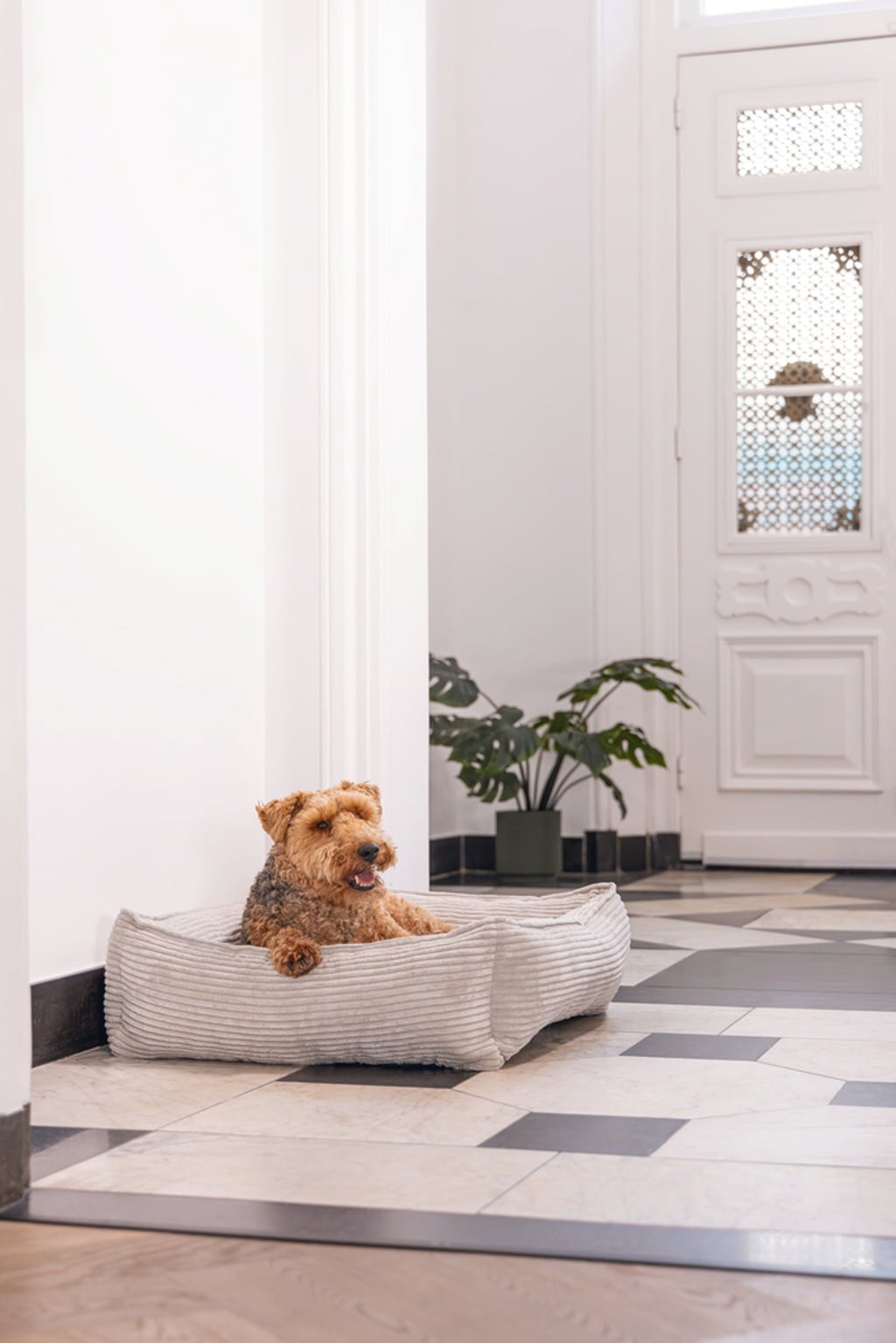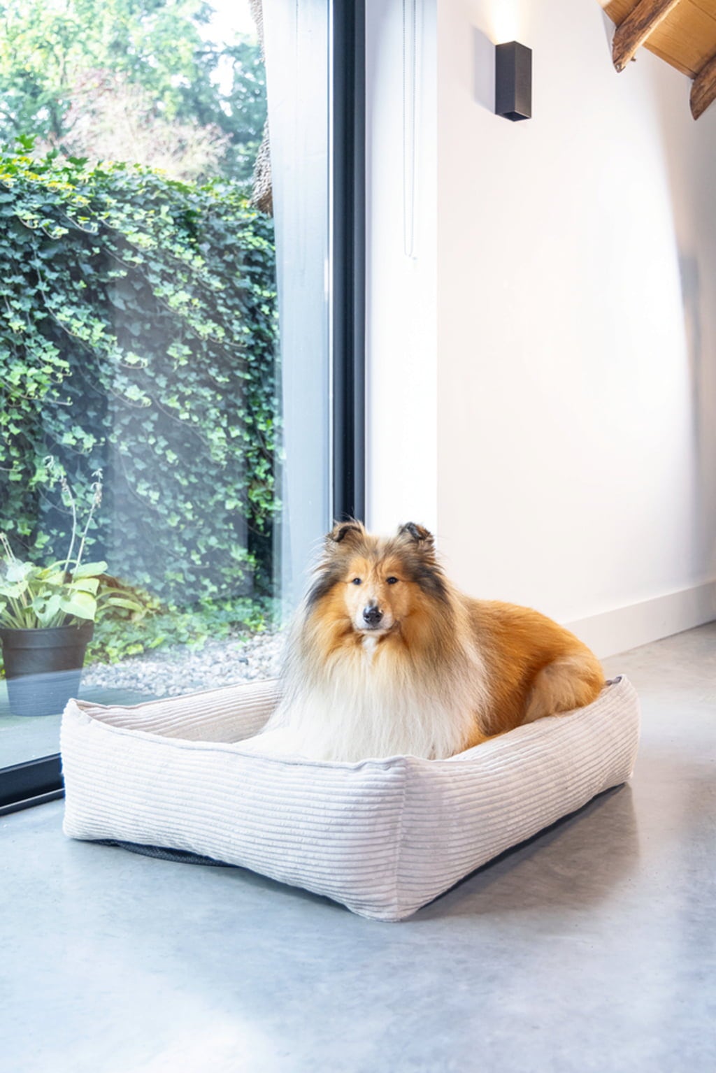 Dit heerlijk comfortabele ligbed in stijlvol lichtgrijs maakt indruk met zijn moderne ontwerp, waardoor het een heel bijzonder accessoire is voor elk hondenhuishouden. De verhoogde randen bieden je viervoeter extra comfort en maken van dit bed gegarandeerd hun nieuwe lievelingsplekje.