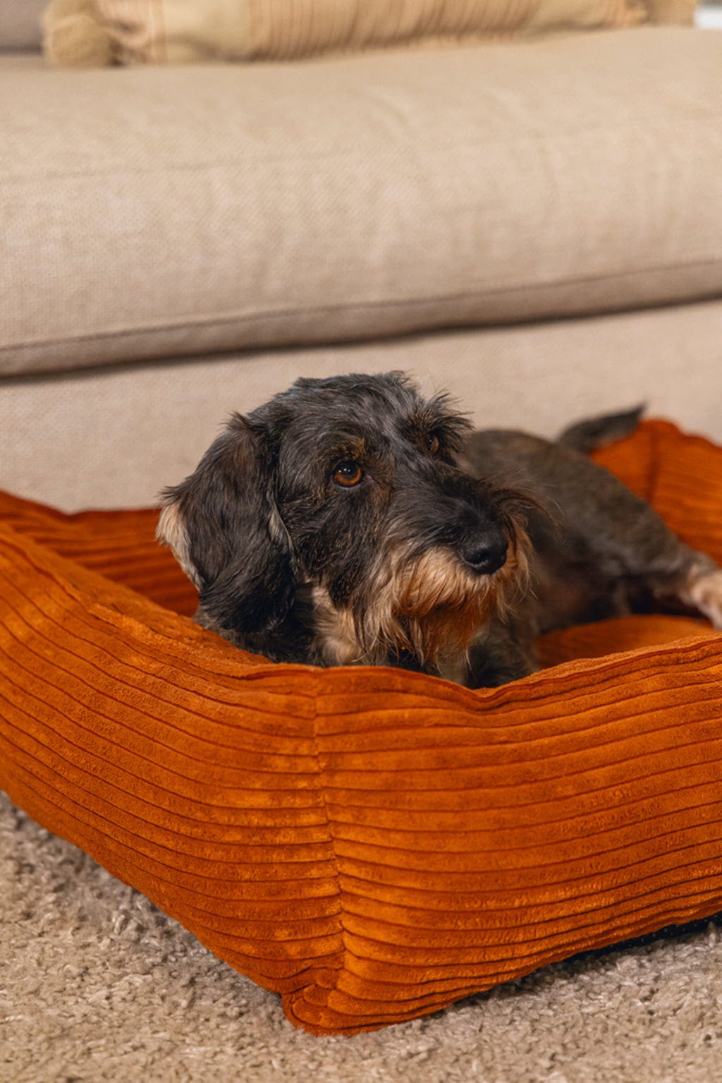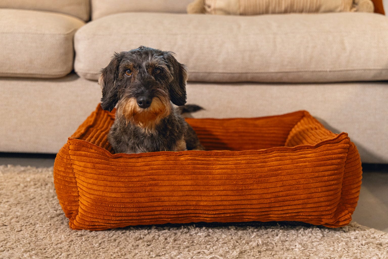Dit heerlijk comfortabele ligbed in warm terracotta maakt indruk met zijn moderne design, waardoor het een heel bijzonder accessoire is voor elk hondenhuishouden. De verhoogde randen bieden je viervoeter extra comfort en maken van dit bed gegarandeerd hun nieuwe lievelingsplekje.