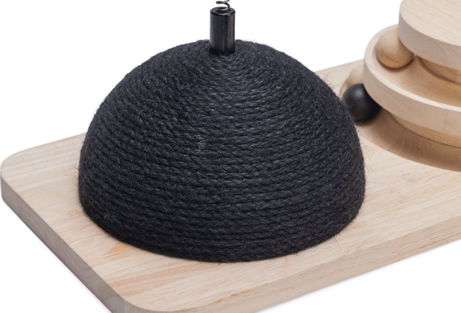 Ben je op zoek naar meer afwisseling en een soortgerichte activiteit voor je kat? Dan is deze stijlvolle krab- en speeltoren echt iets voor jou! Aan de ene kant vindt je kat een speeltoren met twee niveaus waarop houten ballen op een leuke manier bewegen. Aan de andere kant biedt een sisal bal, gewikkeld in robuust jute touw, een geweldige krabmogelijkheid. De springveer met bal en bel zorgt voor extra speelplezier en stimuleert het natuurlijke jachtinstinct van je kat.