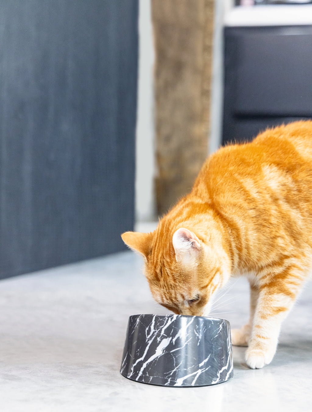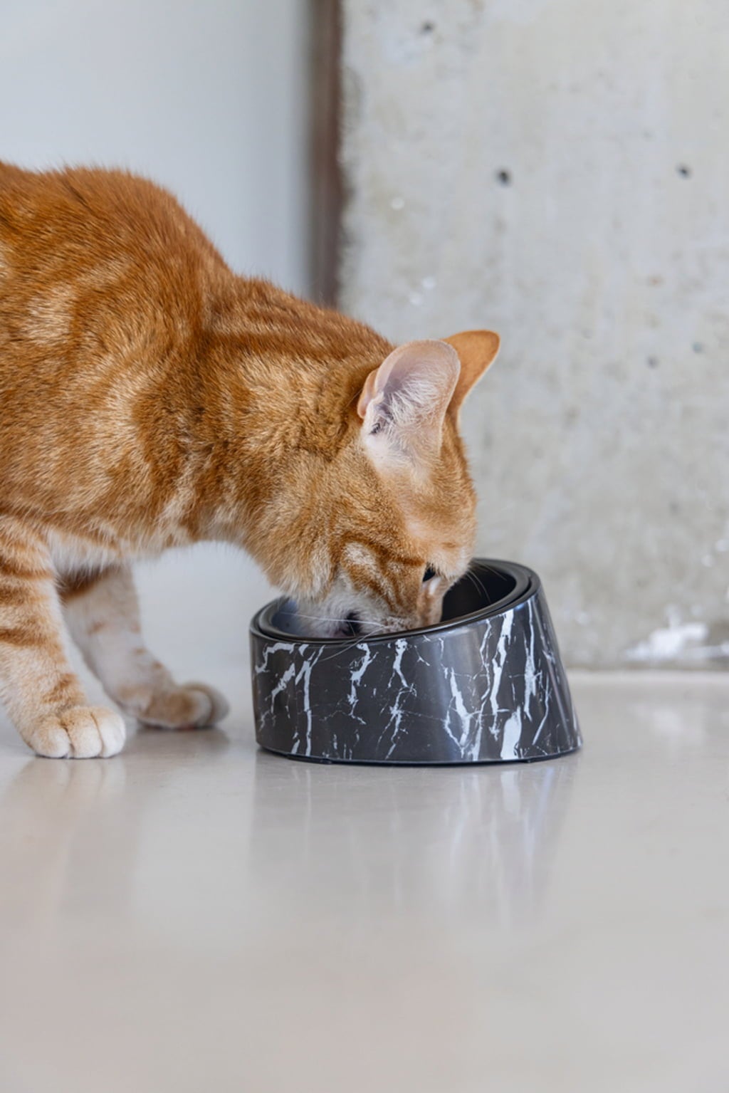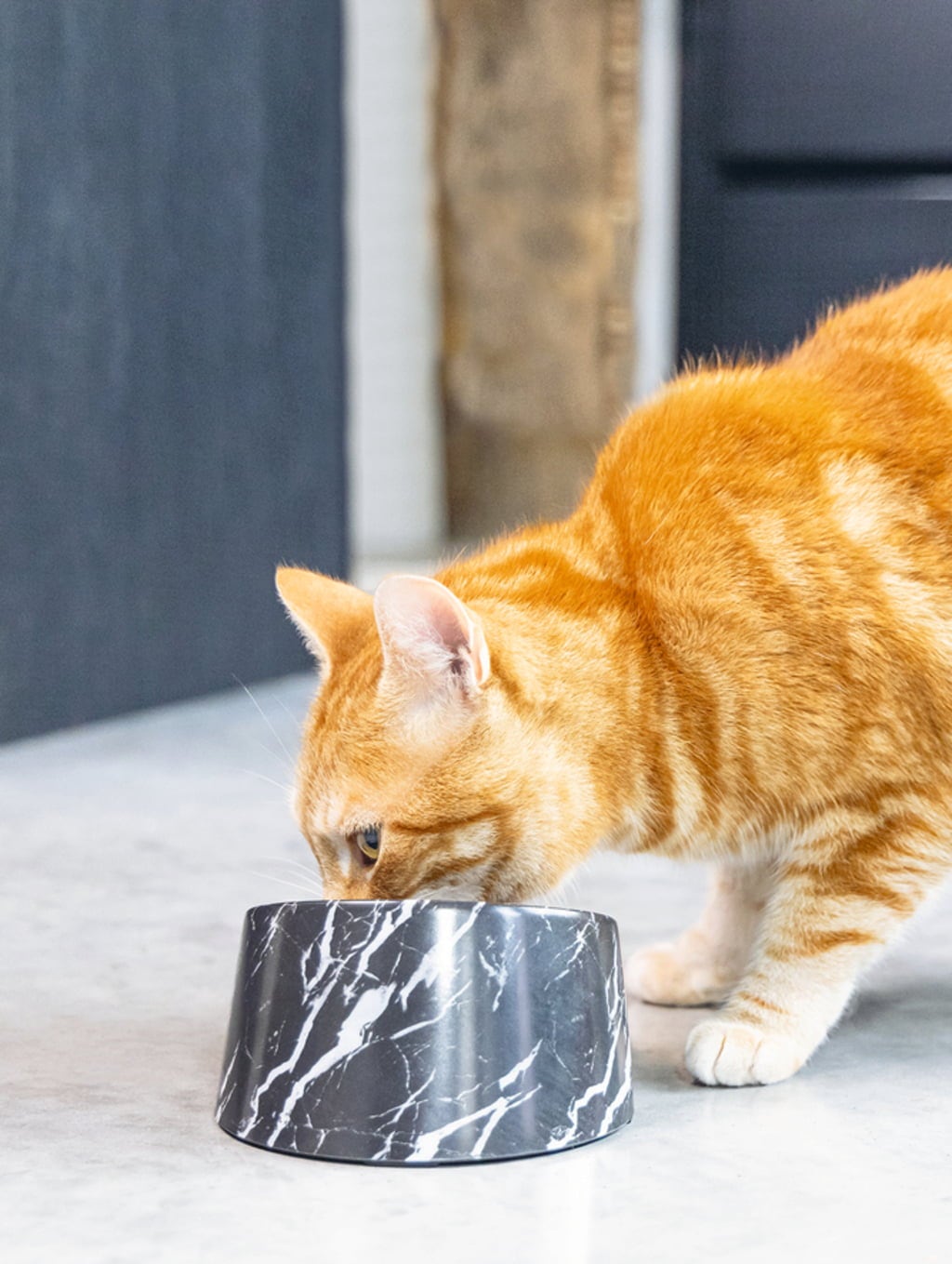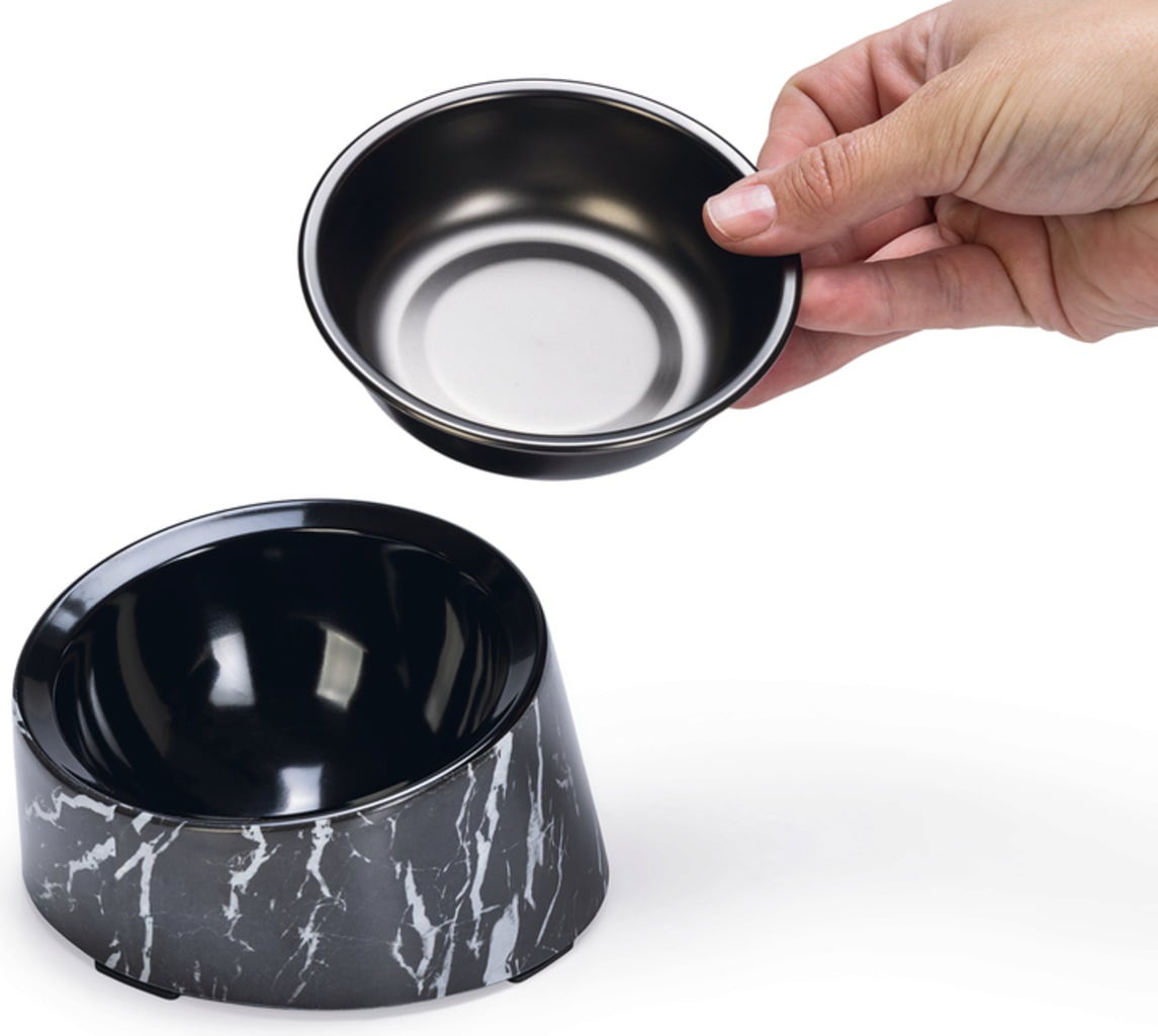 Deze voerbak is ideaal voor iedereen die waarde hecht aan een luxueuze uitstraling en een elegant ontwerp. Met zijn marmeren look zet hij een heel bijzonder accent en is hij het perfecte accessoire voor elegante fluwelen pootjes. Want "het oog eet mee" geldt ook voor katachtig fijn kantwerk.