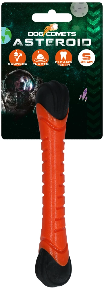 Deze asteroïde komt uit de oneindige diepten van de ruimte om gevangen te worden door je trouwe viervoeter. Op het land of in het water, deze werpstok is het ideale speeltje voor alle honden die van apporteren houden. Hij is ook perfect om aan te trekken, dus uren speelplezier zijn gegarandeerd.