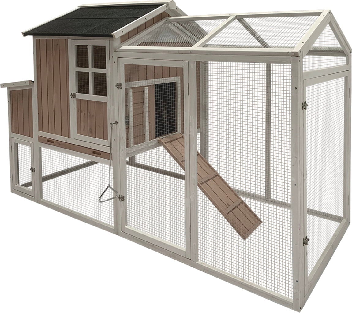 Woodland kippenhokken van duvoplus maken indruk met hun geweldige ontwerp, hoogwaardige afwerking en diervriendelijke functies. Het Mirabel Forest-model is gemaakt van kwaliteitshout en biedt ruimte aan maximaal zes kippen: drie nestboxen, twee zitstokken en een trap maken het leven van elke kip echt comfortabel! Het hok biedt bescherming tegen de regen en is een ideale plek voor een veilige nachtrust. Het buitenverblijf kan volledig worden afgesloten als dat nodig is. De constructie heeft vijf deuren en maakt het verwijderen van eieren gemakkelijk dankzij de hygiënische metalen schaal. Toegang voor reiniging, onderhoud enz. wordt ook vergemakkelijkt door de vele openingen.