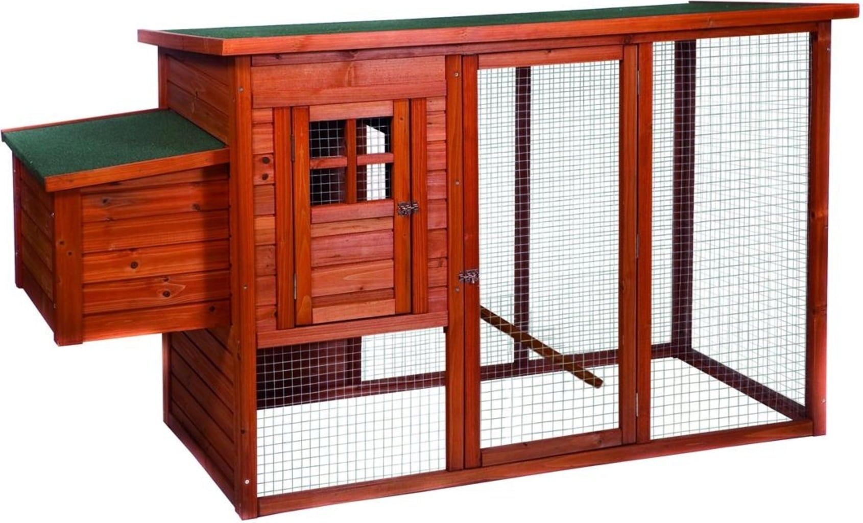 Woodland Hennie Classic van hout is een ruim kippenhok voor maximaal 4 kippen. Het heeft een legnest, een loopplank, een schuilhok en een grote ren die naar wens open of dicht kan.