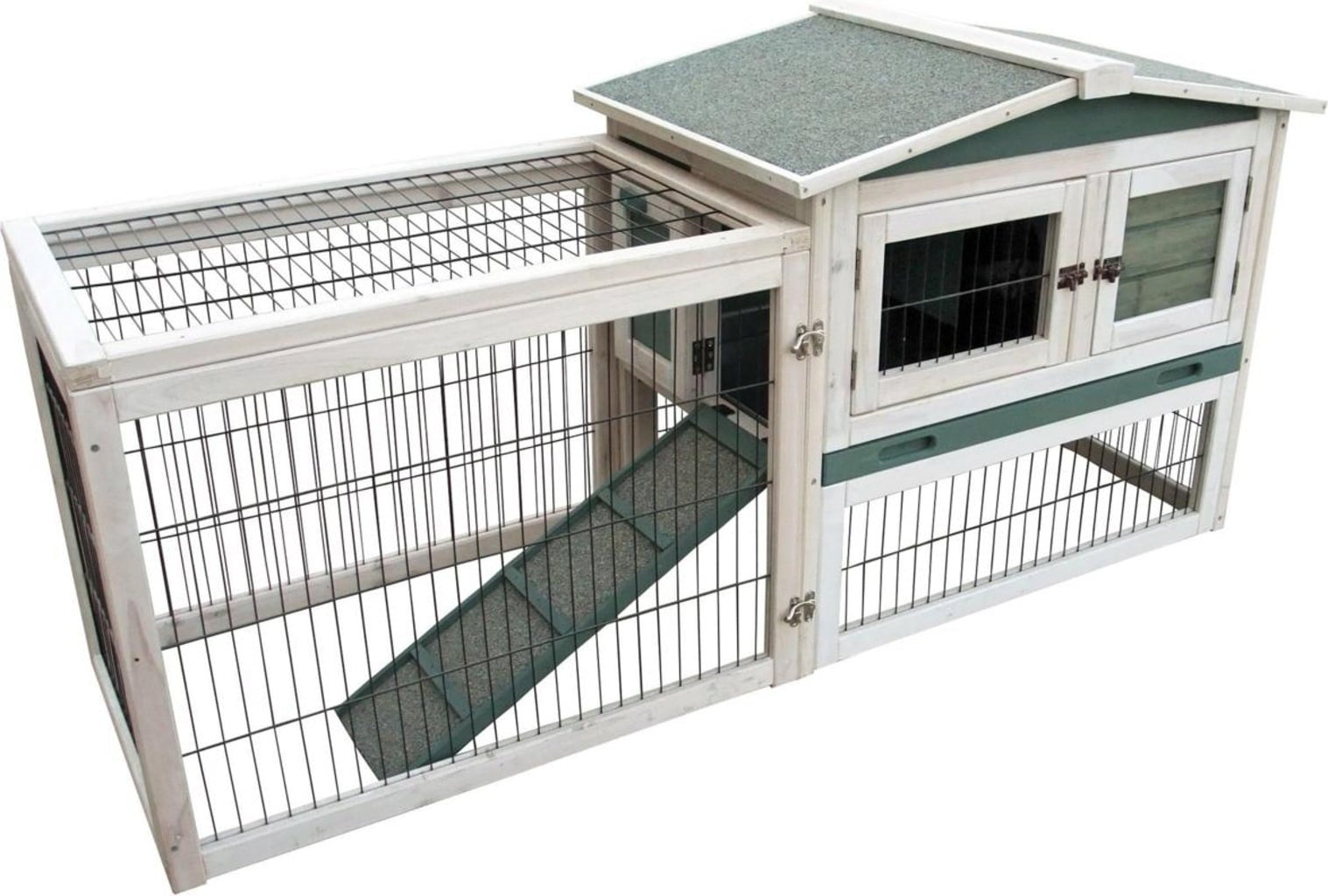 Lambert is een ruim konijnenhok van duvoplus. Het heeft een ruime en beschermde kooi, twee niveaus inclusief een slaapgedeelte en een loopplank. De handgrepen van de uittrekbare metalen lade bevinden zich aan de zijkant - ideaal om snel en hygiënisch schoon te maken. Desgewenst kun je de ren ook scheiden om je konijn een huisje op het platteland te geven.