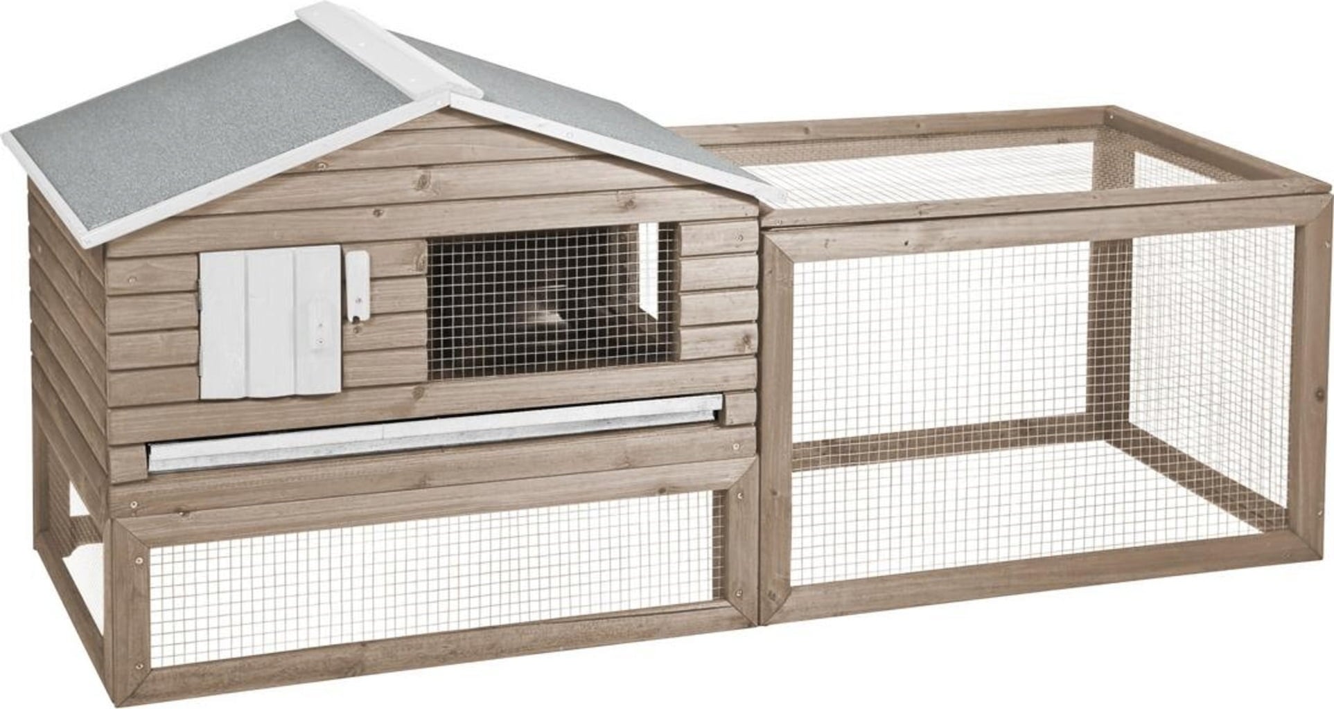 De snoozer is een konijnenhok van duvoplus van hoge kwaliteit. Het heeft een ruime en beschermde kooi, twee niveaus waaronder een slaapgedeelte en een smalle loopplank. De handgrepen van de uittrekbare metalen lade bevinden zich aan de zijkant - ideaal om snel en hygiënisch schoon te maken. Het dak kan worden verwijderd om te luchten en schoon te maken.