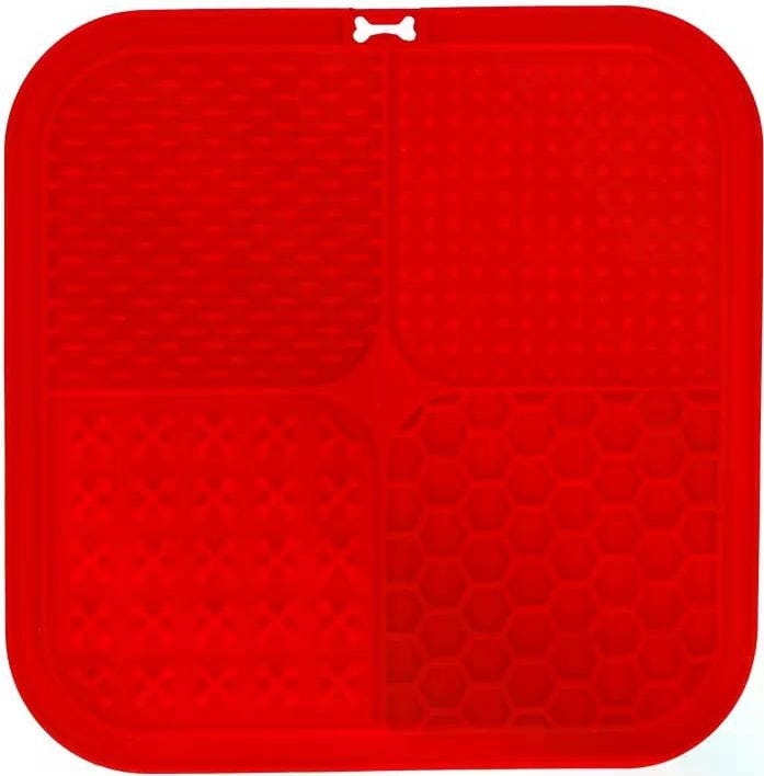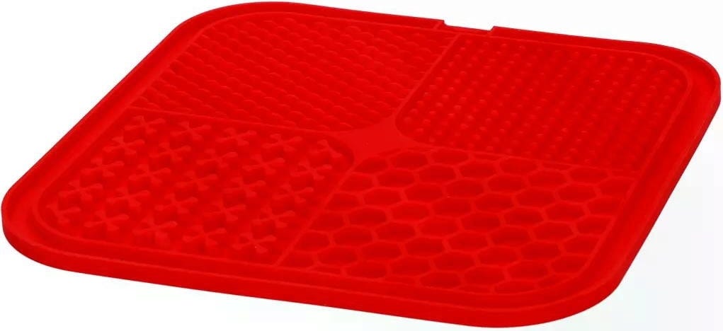 Snoepkonten opgelet! Deze innovatieve likmat is ontwikkeld om je hond of kat een uitdagende en soorteigen activiteit te bieden. Met 4 verschillende patronen (grote en kleine noppen, kruizen, honingraten) maakt deze mat het oplikken van lekkernijen tot een bijzondere uitdaging voor je viervoeter. Je huisdier zal zich moeten concentreren om elk hoekje en gaatje te bereiken - dus langdurig snack- en speelplezier is gegarandeerd!