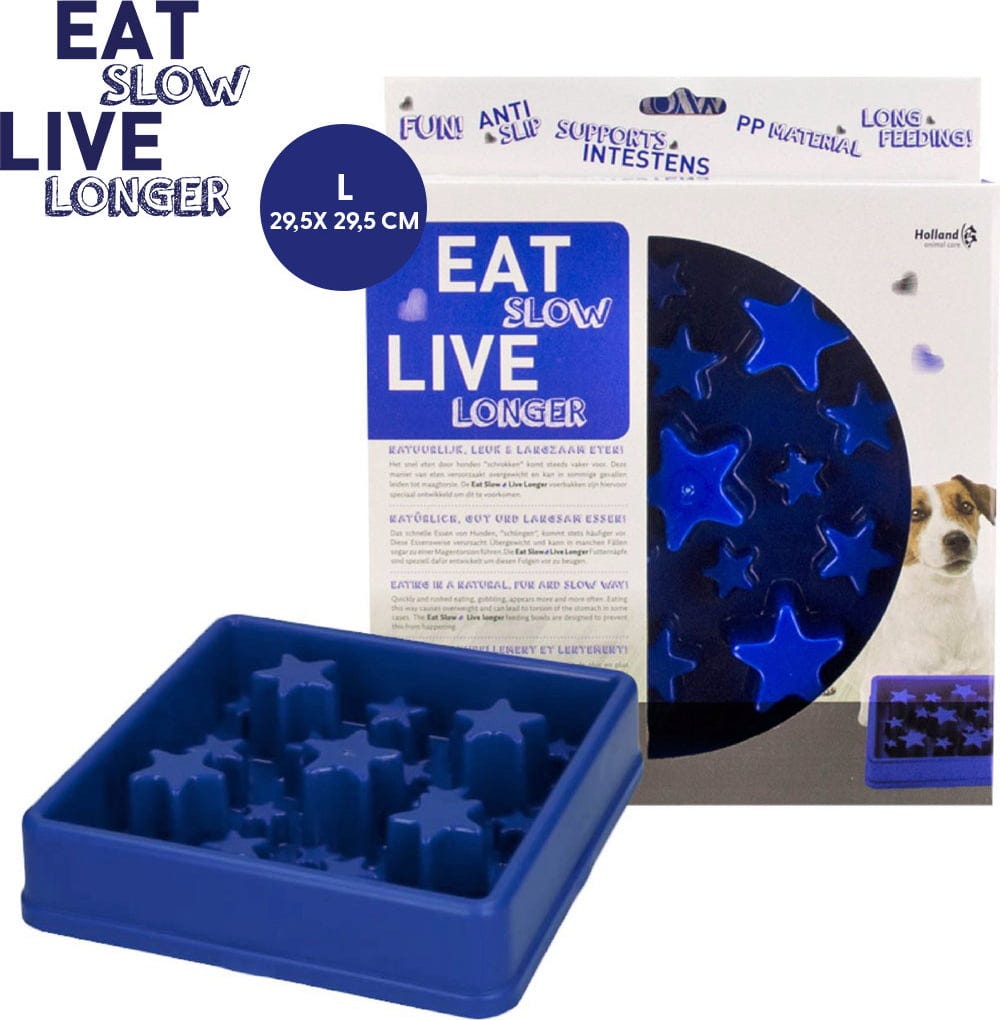 - Met speciaal sterpatroon dat snel eten en schrokken voorkomt