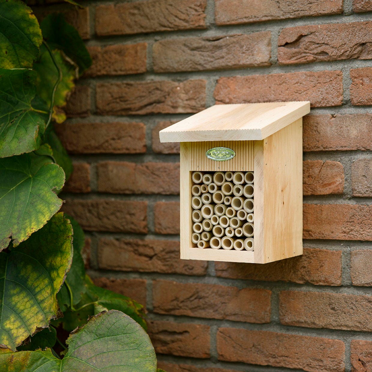 Met dit geweldige bijenhuis kun je deze nuttige insecten helpen beschermen en ze een veilig onderkomen bieden. Het is uitgerust met bamboerietjes van verschillende diameters, zodat verschillende soorten wilde bijen hier kunnen nestelen. Een vrouwelijke bij vormt verschillende cellen in een bamboerietje, die ze uitrust met een eitje en wat stuifmeel en nectar voor de larve. Met dit goed doordachte huisje maak je de nuttige insecten zeker erg blij.