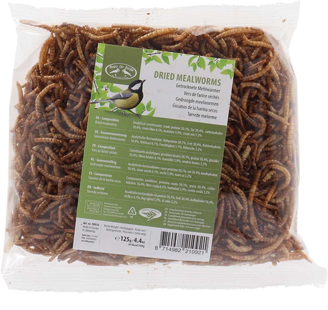 Deze gedroogde meelwormen zijn een ideale voedselbron voor vogels en eekhoorns, vooral tijdens de winter.