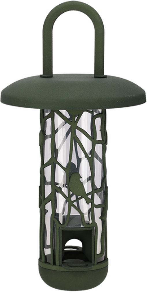 De gerecyclede voersilo is een praktische en milieuvriendelijke manier om het hele jaar door tuinvogels te voeren. Hij is gemaakt van robuust gerecycled plastic, is duurzaam, weerbestendig en past perfect in de tuin.