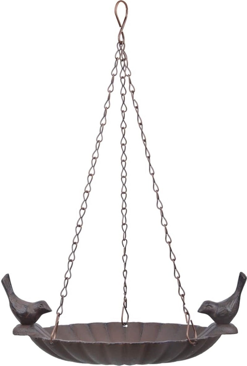 Het mooie vogelbad van stevig gietijzer biedt dorstige vogels een gezellige rustplaats. Met de ketting en de ophanghaak kan hij zonder veel moeite aan een boom, een balk of het plafond worden bevestigd. De plaats moet wel rustig en buiten bereik van katten worden gekozen. Overigens gebruiken vogels een met water gevulde bak niet alleen om te drinken, maar ook voor een ontspannend bad.