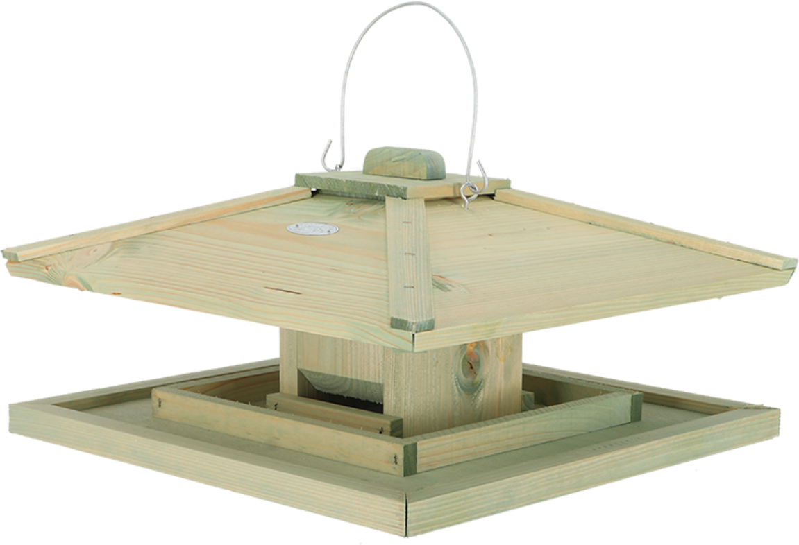 Maak van het voeren van de vogels een moeiteloos plezier met het decoratieve vogelvoederhuisje in Japanse stijl. De praktische silo in het midden voorziet de vogels van voldoende voerl zonder dat je het elke dag hoeft bij te vullen. De opstaande rand dient niet alleen als zitstok voor de vogels, maar biedt ook een apart voedercompartiment. Hierdoor zitten de vogels niet direct in het voer en worden ziektes door besmetting voorkomen.