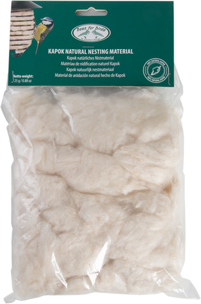 Dit zachte nestmateriaal is afkomstig van de kapokboom en wordt door vogels vaak gebruikt om een gezellig huis te creëren. De wollige, zijdeachtige vezels zijn veilig voor vogels omdat er geen lange, dunne draden zijn waar de pootjes in kunnen blijven haken.