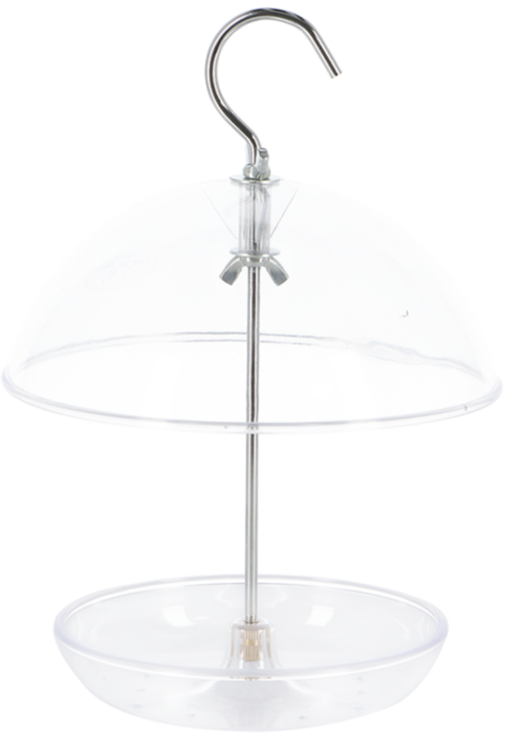 Dit praktische voederhuisje beschermt het vogelvoer betrouwbaar tegen regen en vuil dankzij het koepeldak. Het transparante materiaal maakt het ook gemakkelijk om de vogels te observeren terwijl ze van hun maaltijd genieten. Met geïntegreerde ophanghaak voor veelzijdige plaatsing in de tuin of op het balkon.