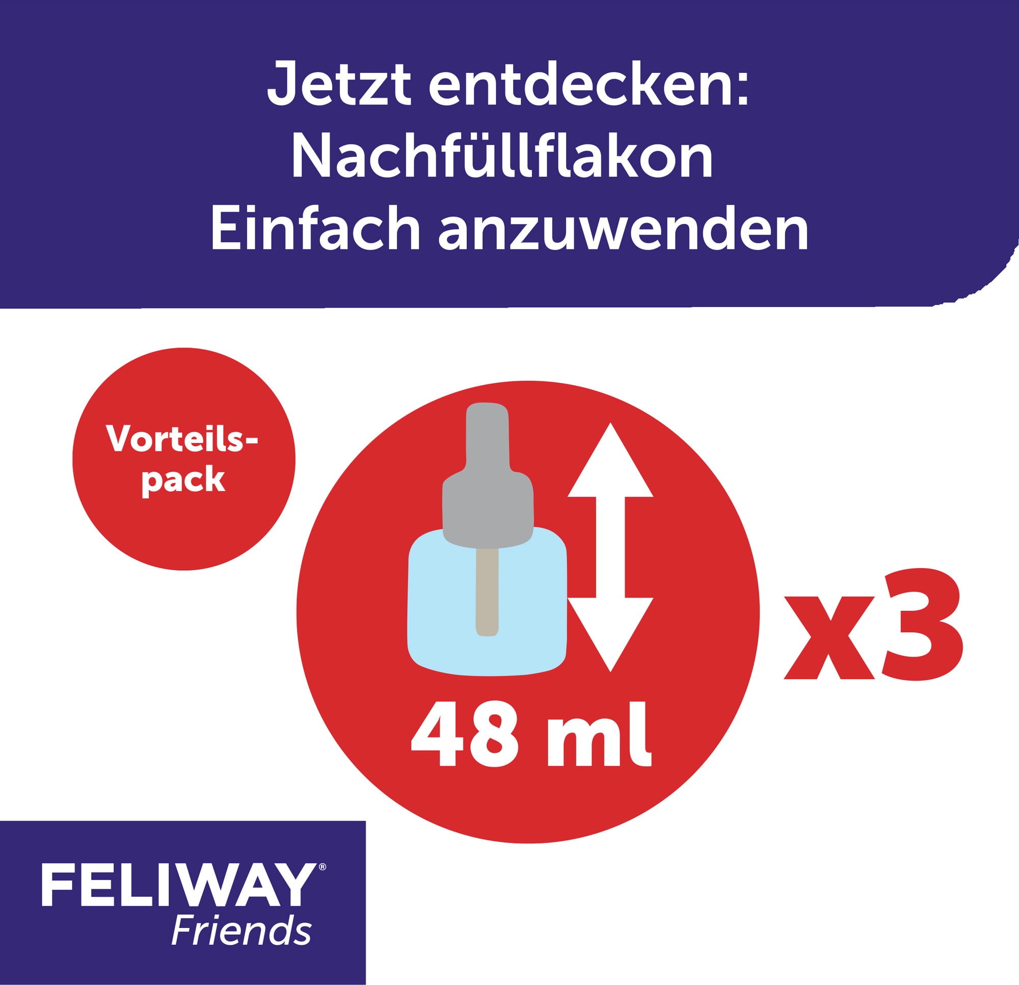 ► Dit voordeelpakket bevat 3 Feliway Friends flesjes van elk 48 ml. Eén flesje is goed voor 30 dagen.