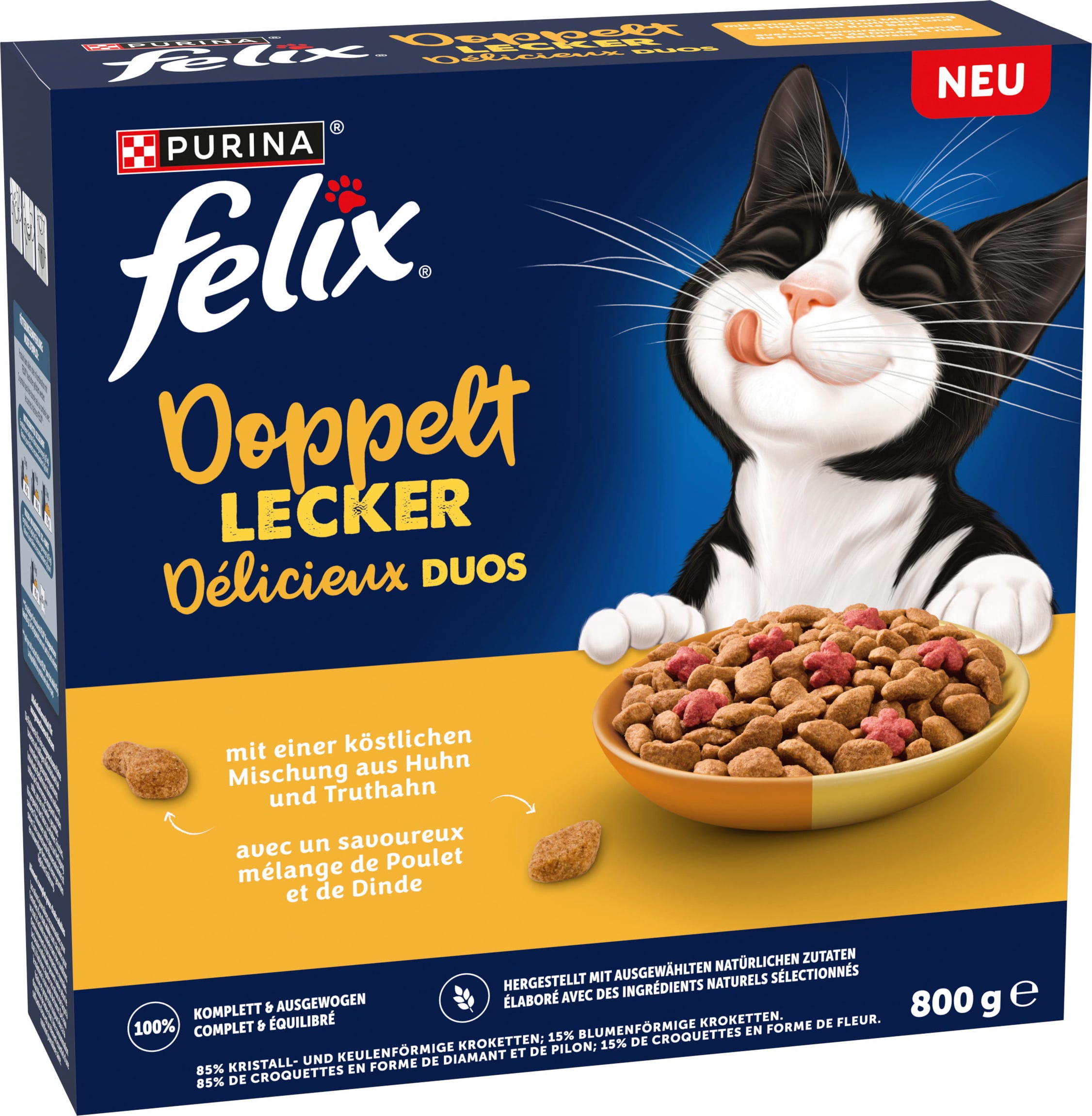 Farmhouse Sensations van Felix is het perfecte droogvoer voor kleine katachtige fijnproevers. De onweerstaanbare mix van kip, kalkoen en groenten is niet alleen een feest voor de zintuigen, maar ook een echte traktatie voor je kat.