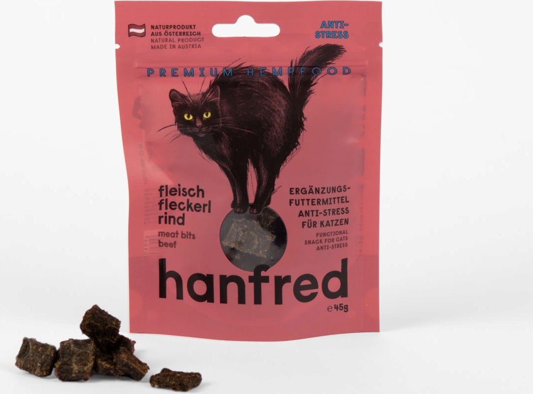 Als je kat gevoelig reageert op veranderingen of stressvolle situaties, kan deze snack een goede keuze zijn. Hanfred vleessnoepjes bestaan voor 95 % uit vlees en voor 5 % uit henneppoeder - zonder granen of kunstmatige toevoegingen.