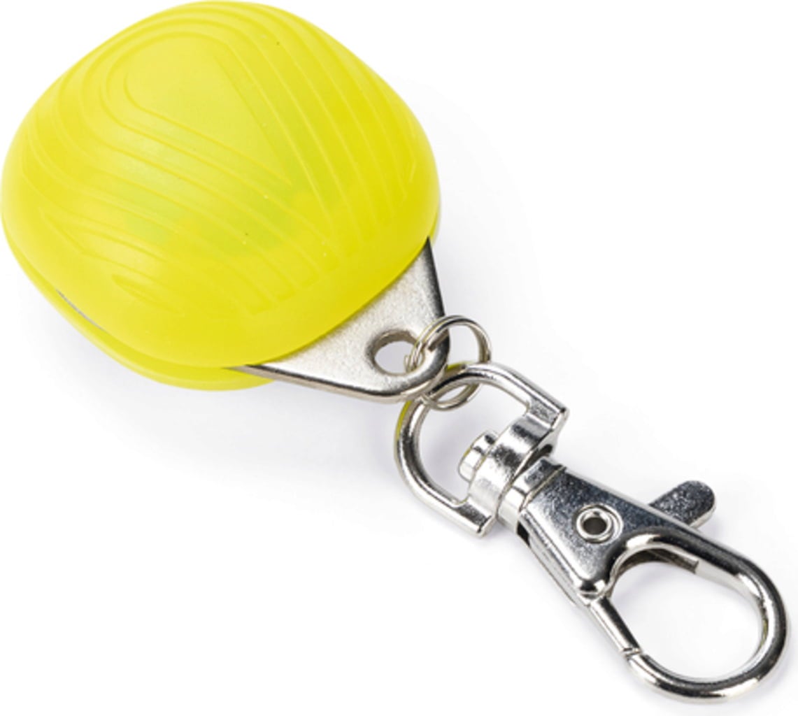Het gebruiksklare lampje heeft een robuuste karabijnhaak waarmee het snel aan de halsband, het tuig of de riem kan worden bevestigd.