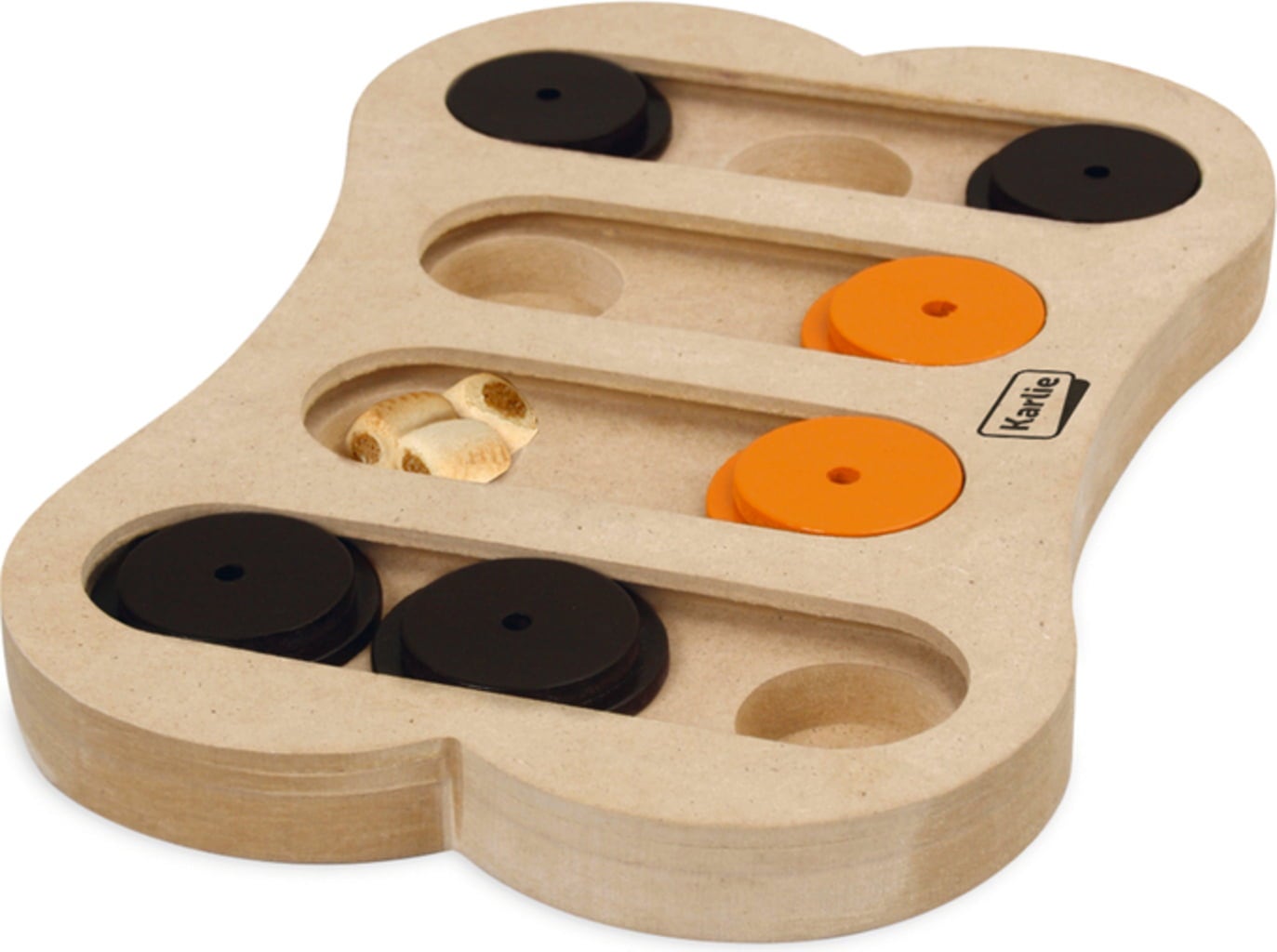 Heen en weer, waar zijn de heerlijke traktaties verstopt? Dit slimme speeltje biedt je hond uren speelplezier terwijl hij zijn mentale vaardigheden ontwikkelt. Verstop zijn favoriete snacks onder de schuifjes en laat hem zelf ontdekken hoe hij erbij kan komen. Afwisseling gegarandeerd!