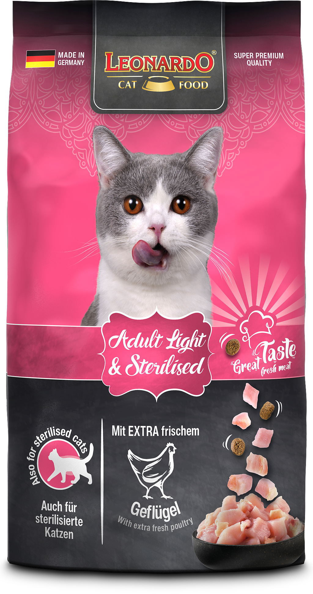 Het Adult Light & Sterilised droogvoer is een energiereductie voer met een hoog eiwitgehalte dat heerlijk gevogelte combineert met waardevol krill en chiazaad.