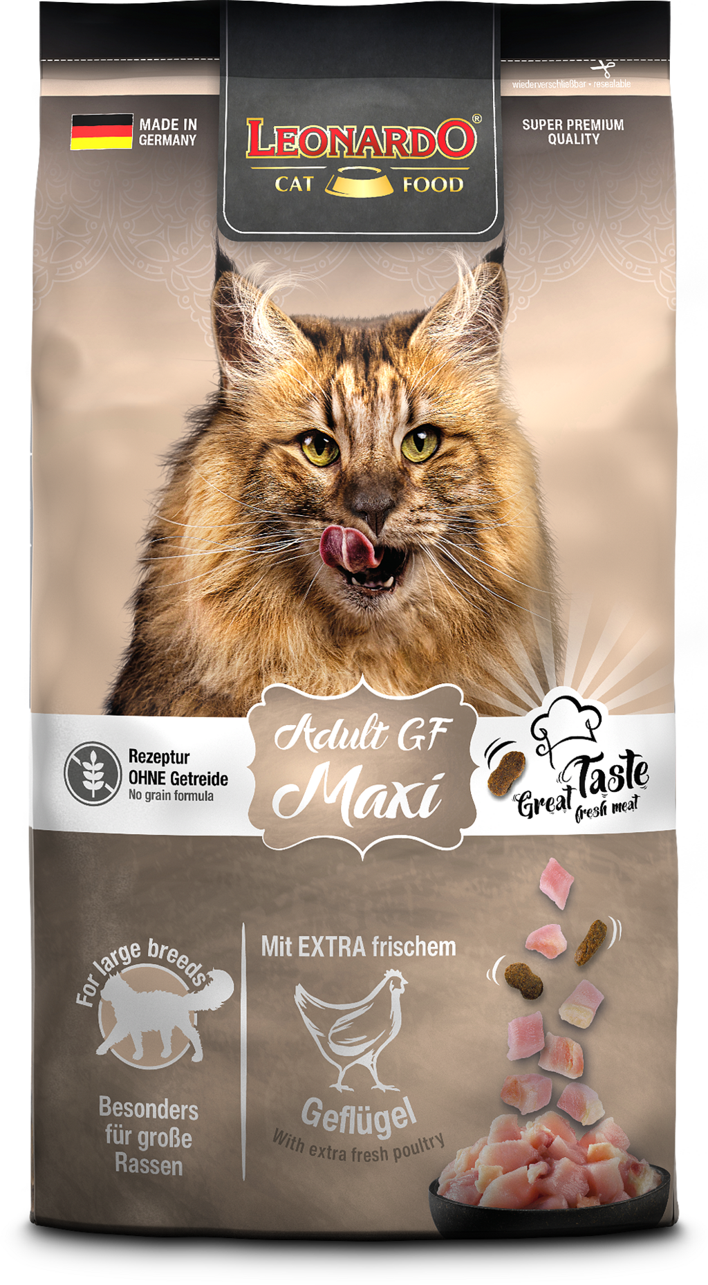 Dit graanvrije droogvoer verwent vleesliefhebbers met extra vers gevogelte. Het recept is verfijnd met krill-, amarant- en chiazaden en afgestemd op de behoeften van katten met voedselintoleranties. Perfect voor katten van grote rassen dankzij grote brokjes!