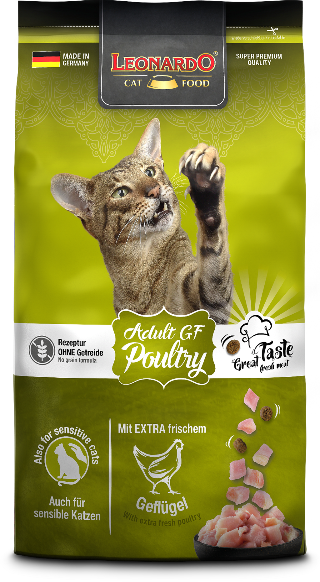 Dit graanvrije droogvoer verwent vleesliefhebbers met extra vers gevogelte. Het recept is verfijnd met krill-, amarant- en chiazaden en afgestemd op de behoeften van katten met voedselintoleranties.
