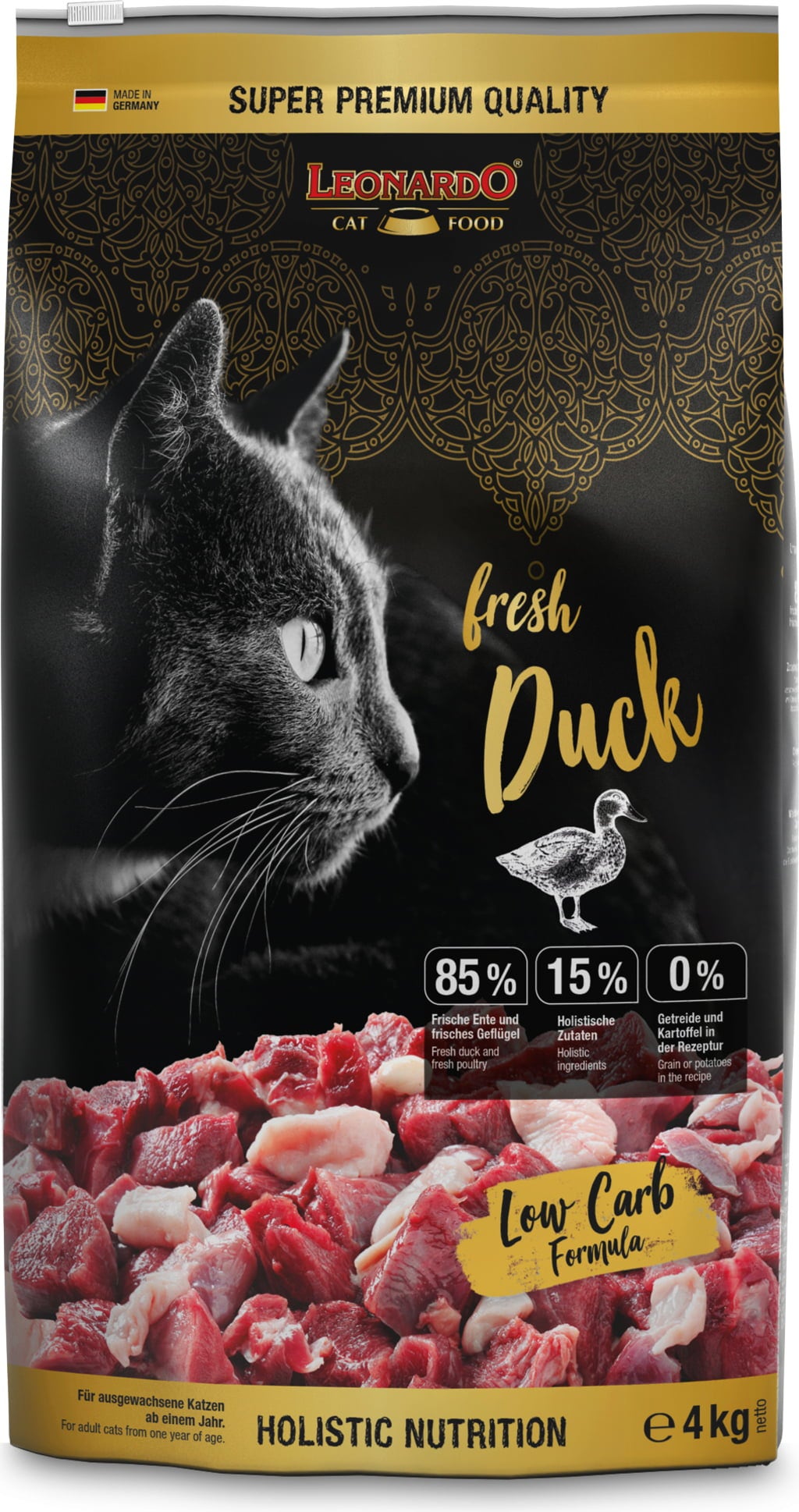 Extra vers eenden- en gevogeltevlees wordt gecombineerd met geselecteerde plantaardige ingrediënten zoals groenten, kruiden, bessen en chlorella-algen. Het holistische voedingsconcept bevat geen granen of aardappelen, wat betekent dat het zeer goed verdragen wordt door hongerige katten. In plaats daarvan is het voer gebaseerd op een vetarm en zetmeelarm recept met hoogwaardige eiwitten uit erwten en amarant.